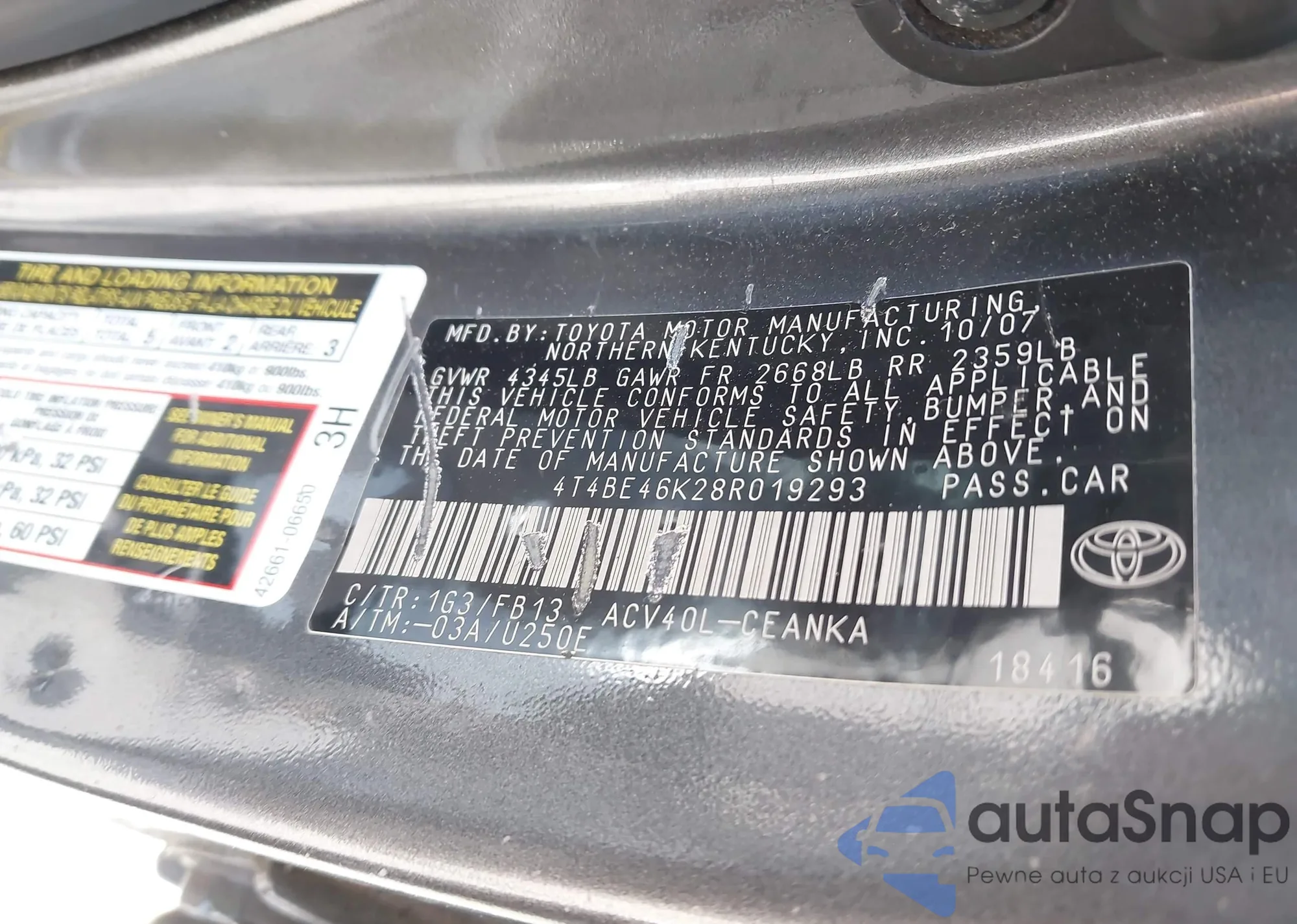 • VIN 4T4BE46K28R019293
