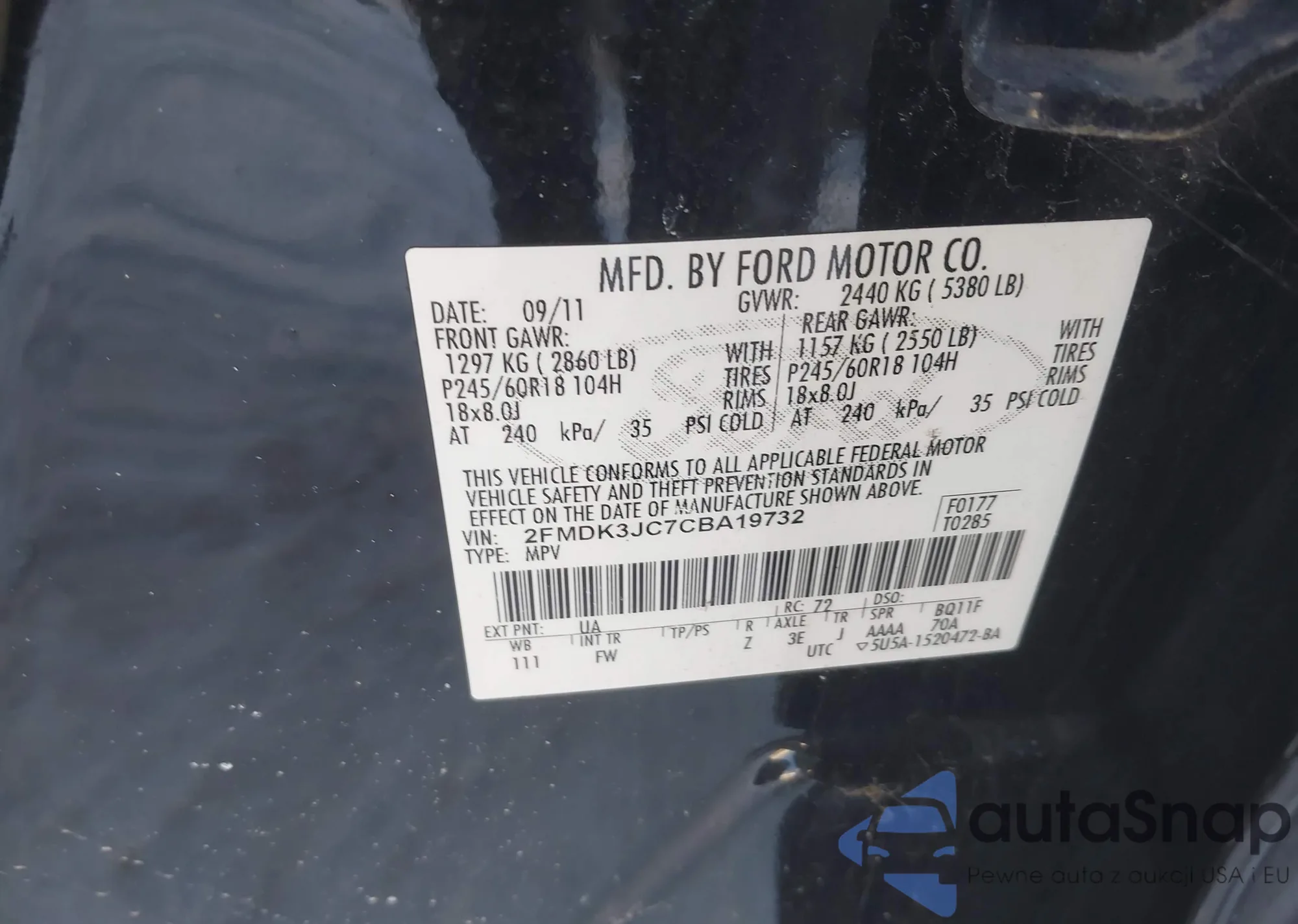 • VIN 2FMDK3JC7CBA19732