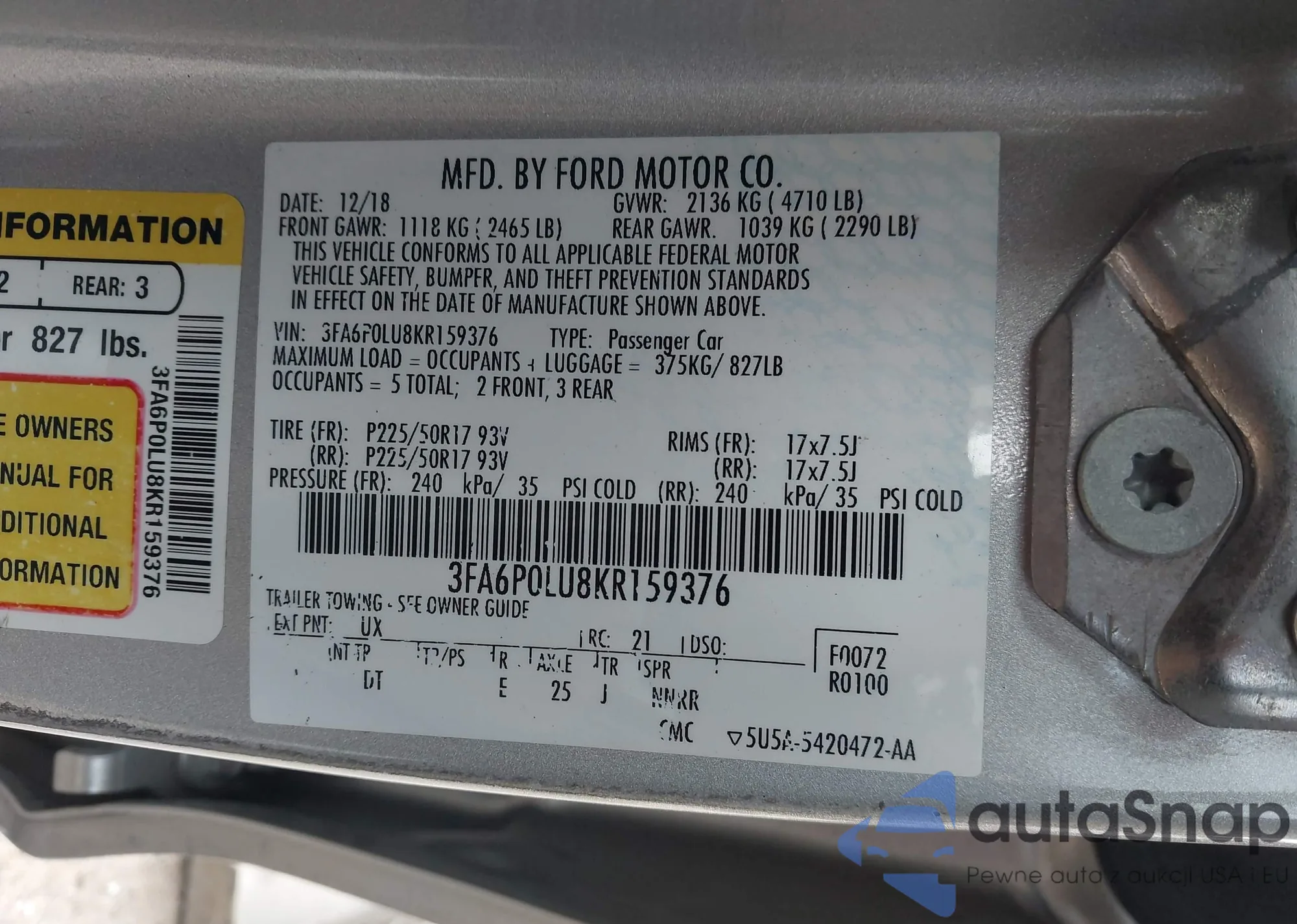 • VIN 3FA6P0LU8KR159376