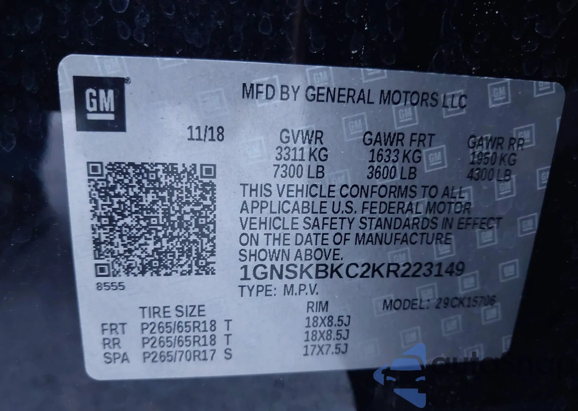 • VIN 1GNSKBKC2KR223149