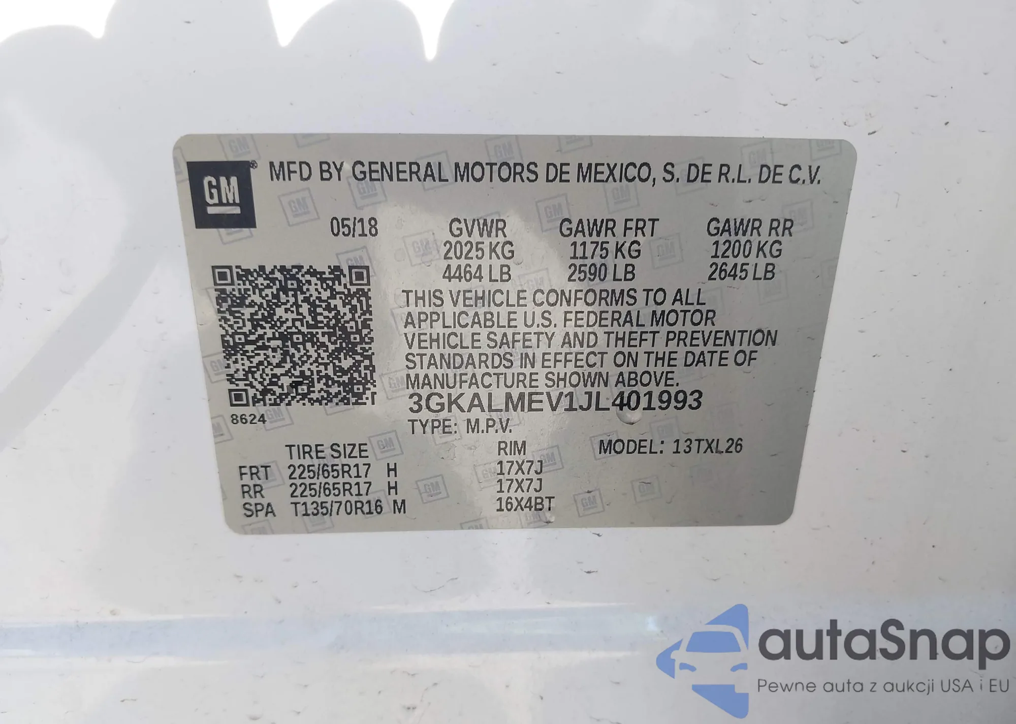 LOT: 44275212 VIN: 1G1FK1R69J0119743