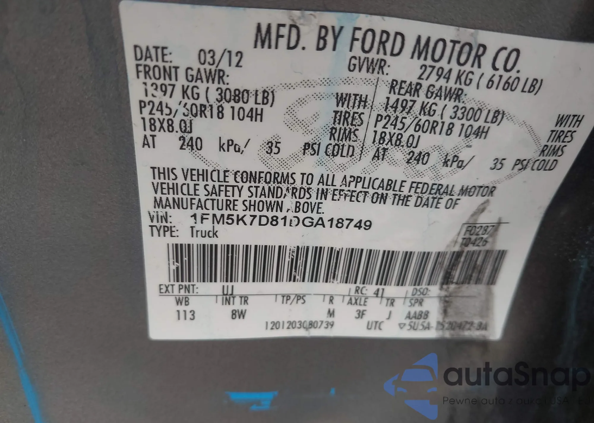 • VIN WAU92BF21NN050760