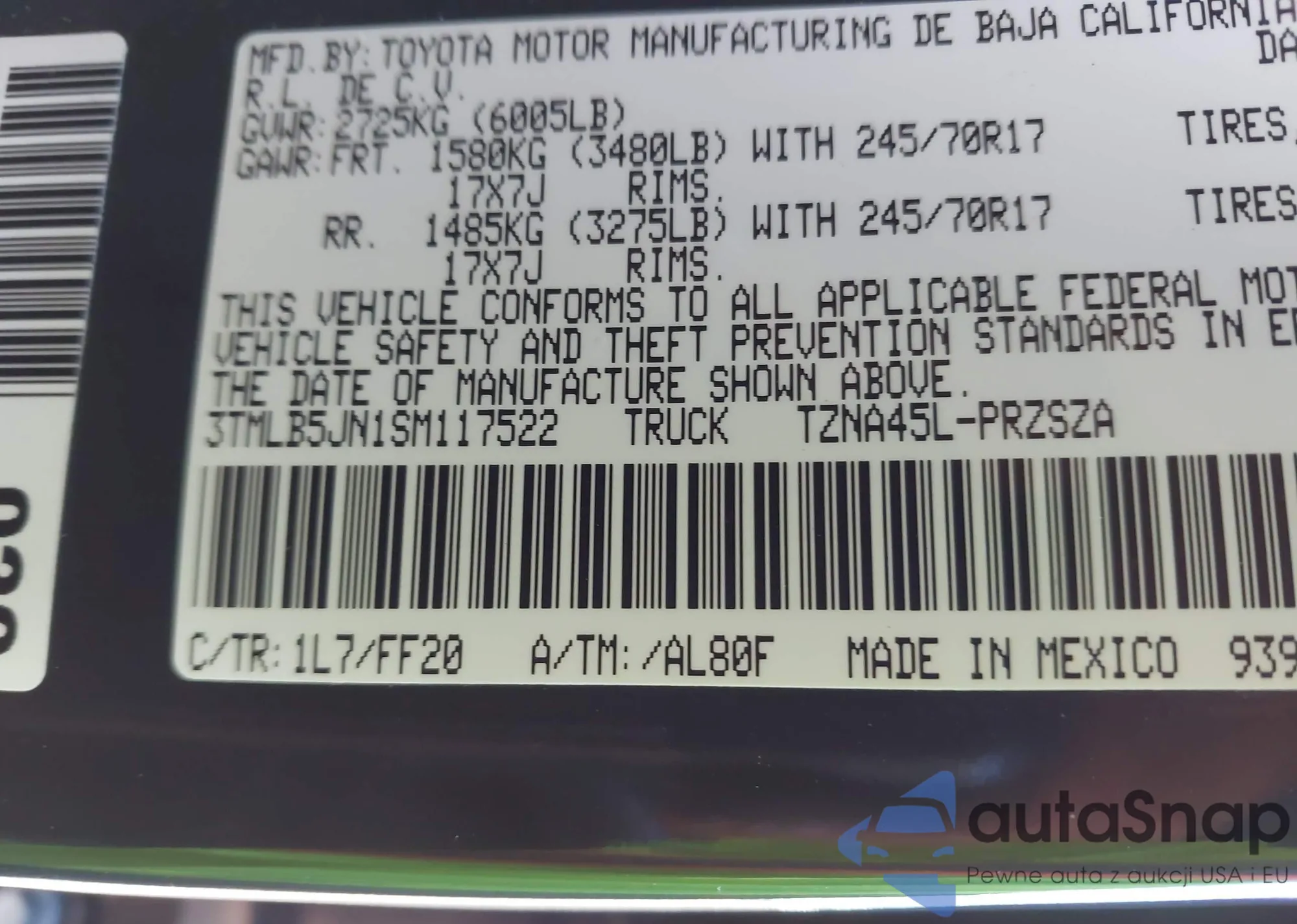 • VIN 3TMLB5JN1SM117522