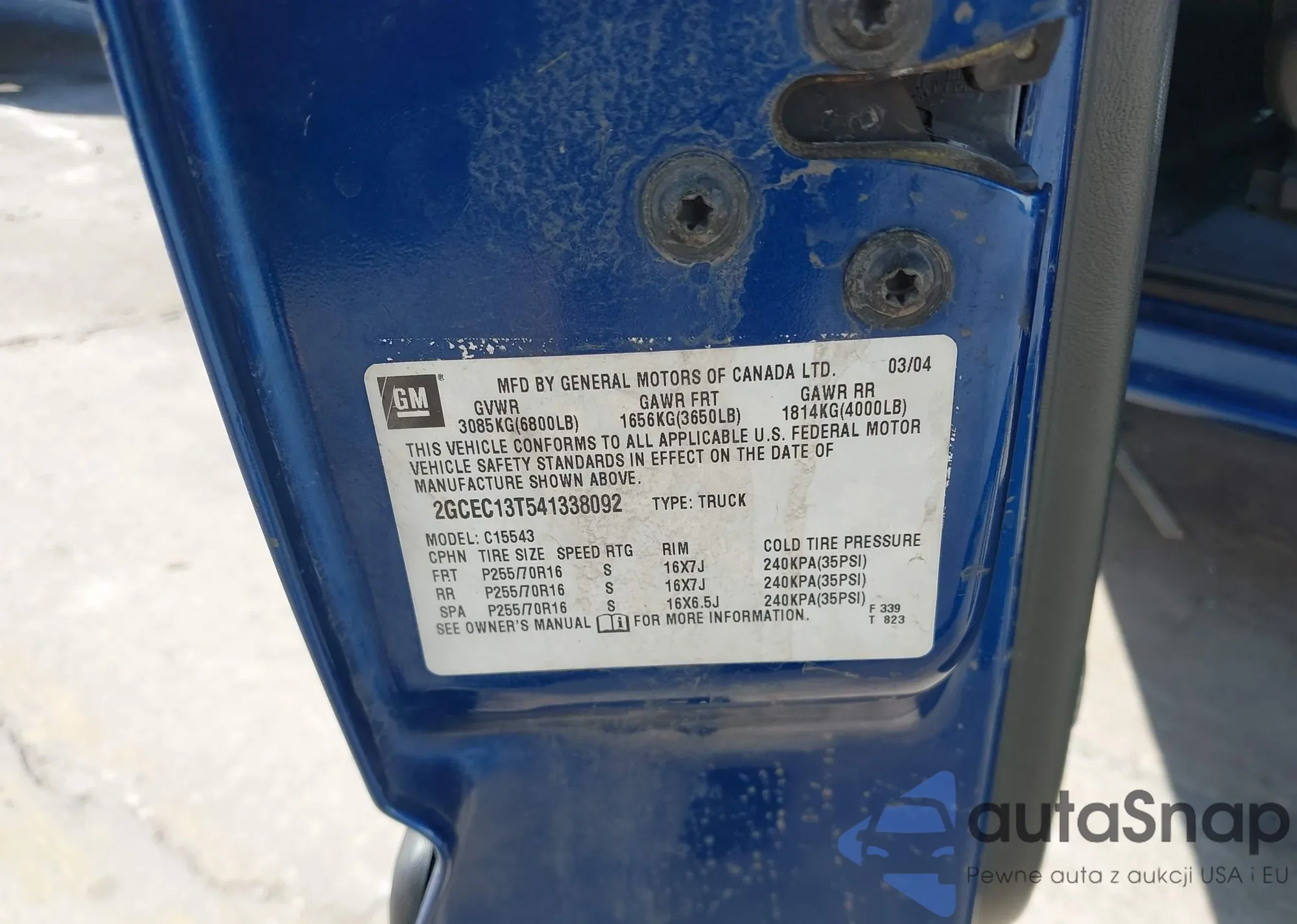 • VIN 2GCEC13T541338092