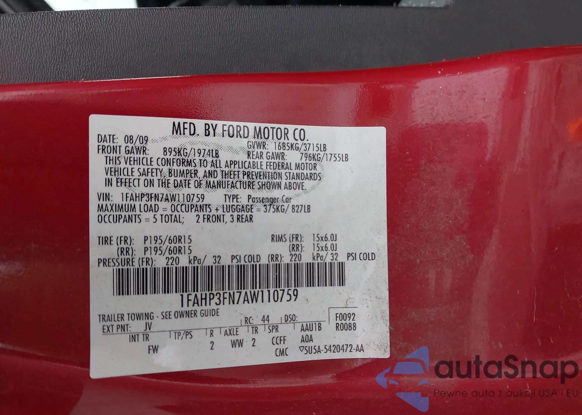• VIN 1FAHP3FN7AW110759