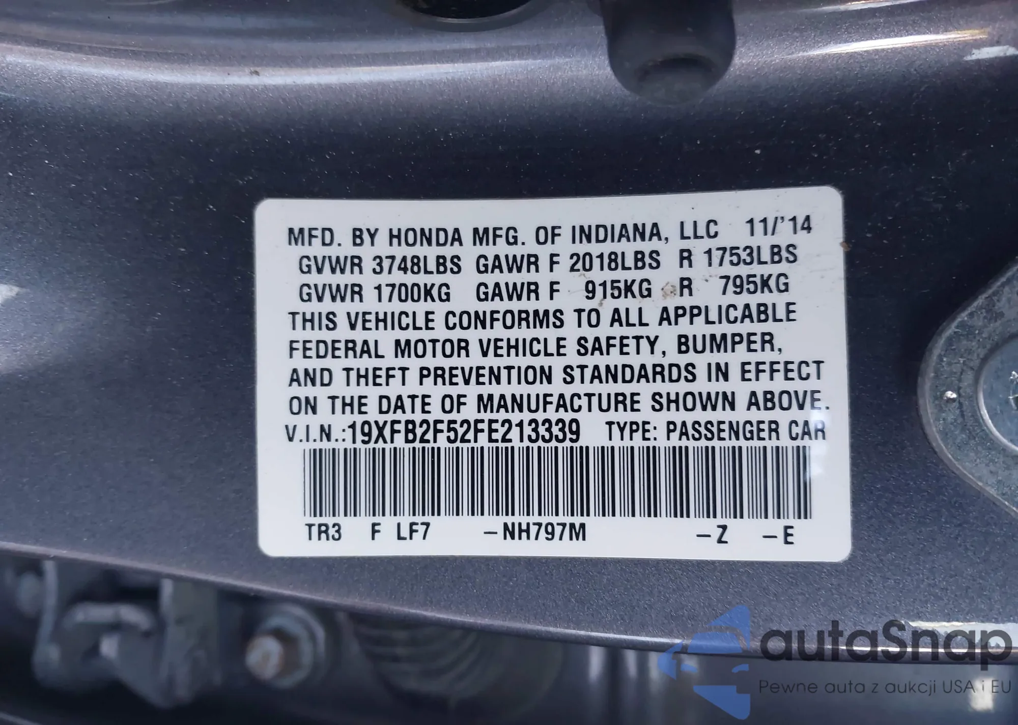 • VIN 19XFB2F52FE213339
