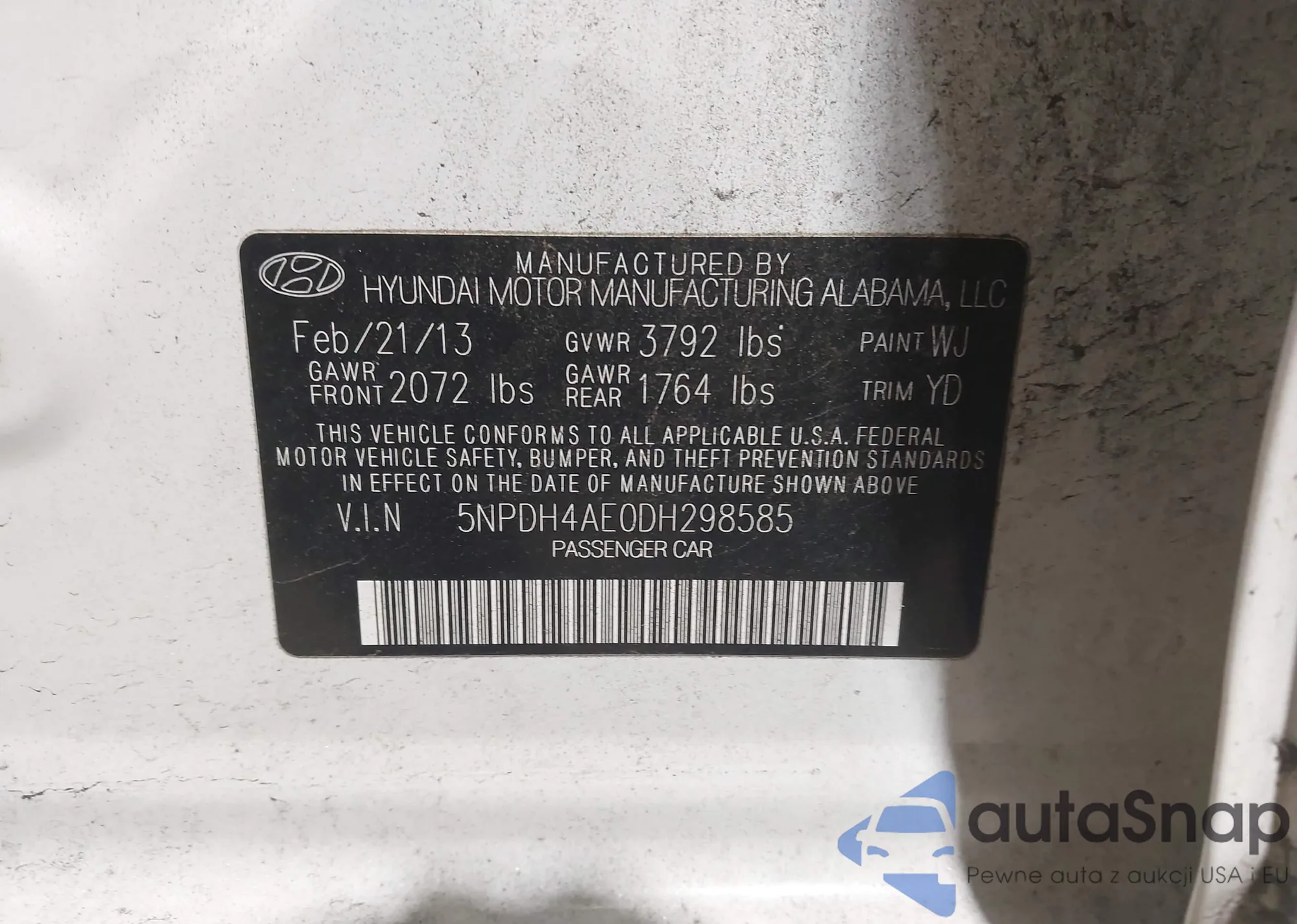 LOT: 43928898 VIN: 5NPDH4AE0DH298585