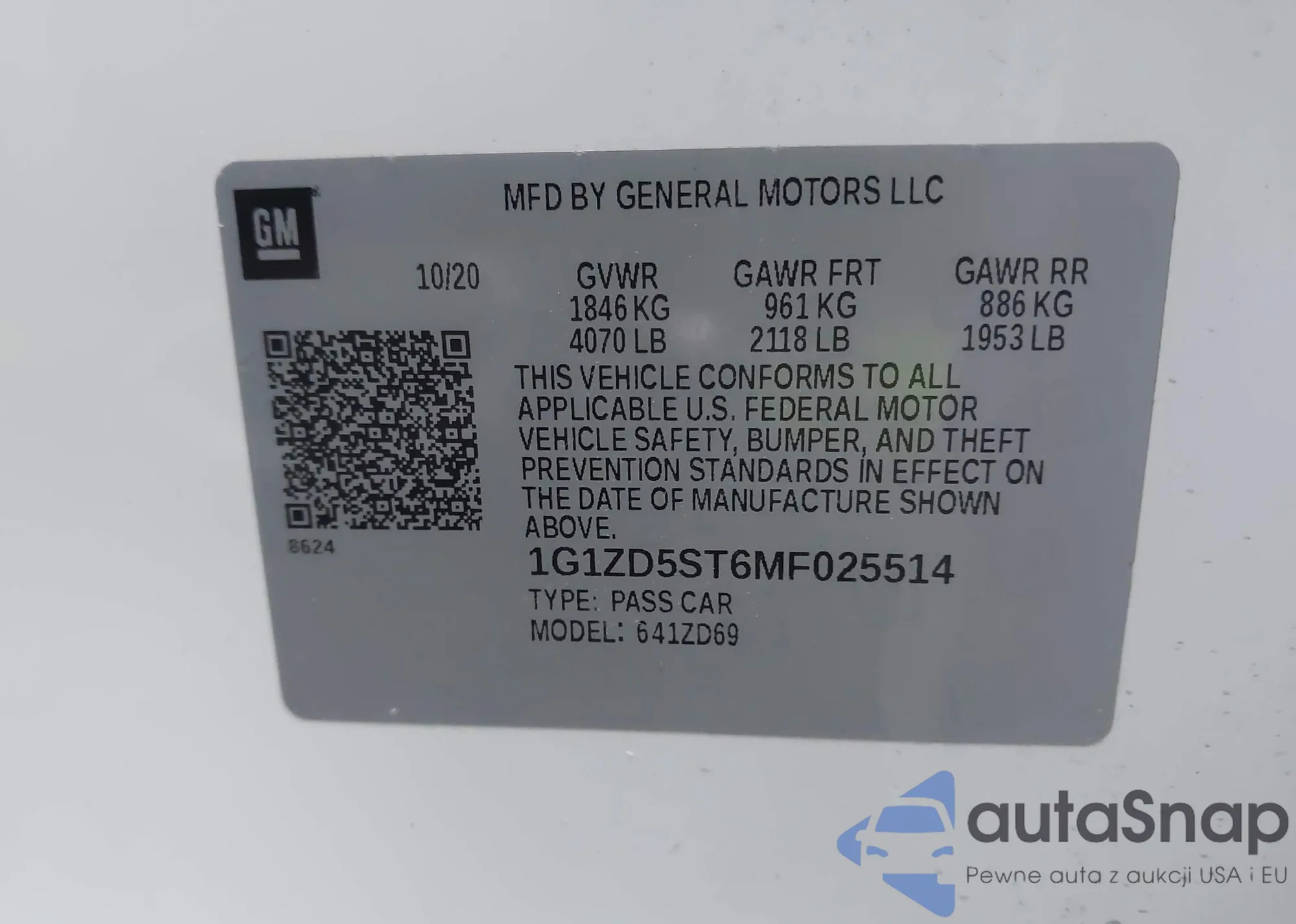 • VIN 1G1ZD5ST6MF025514
