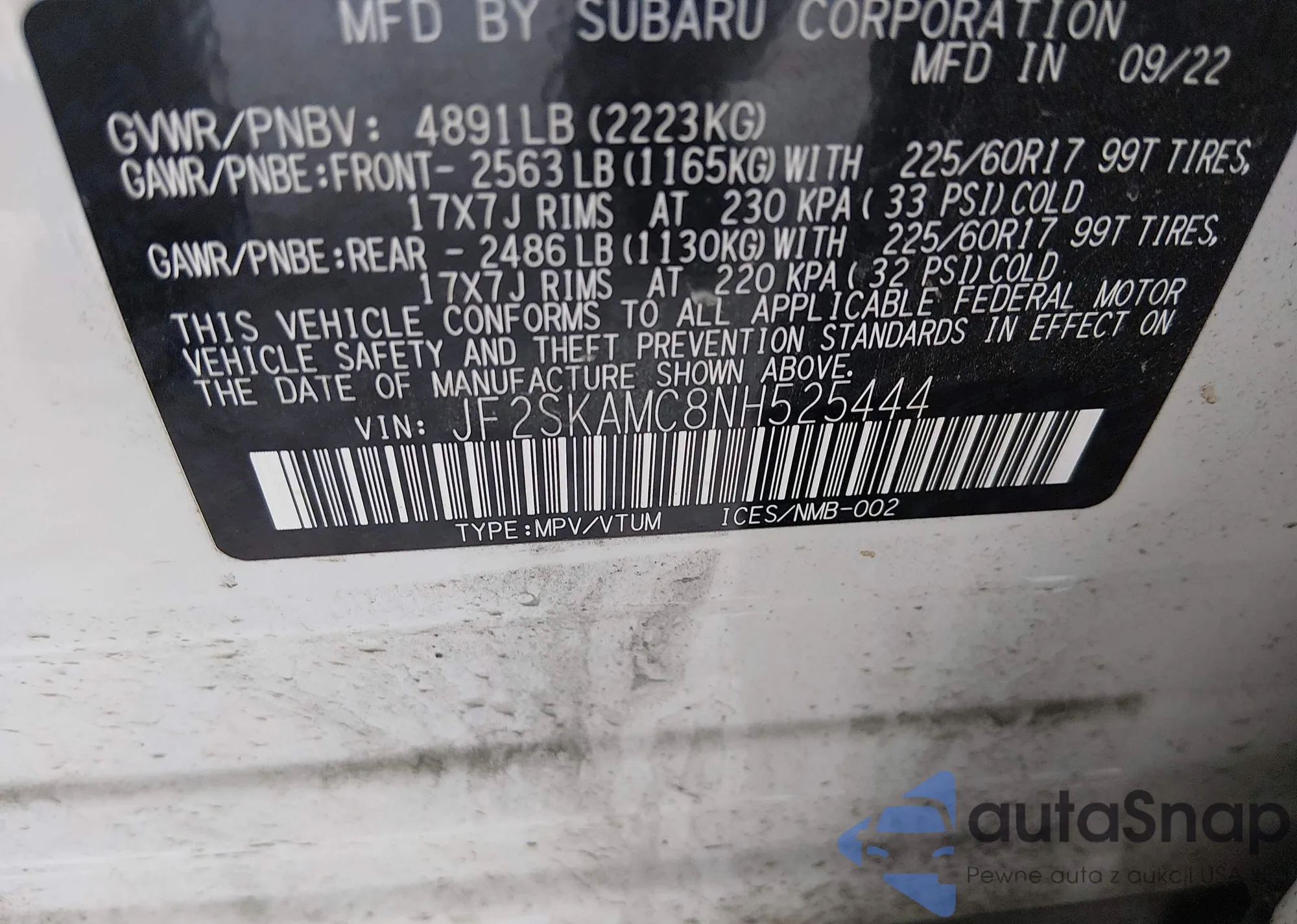 LOT: 43903137 VIN: 3GNAXUEV8NL120741