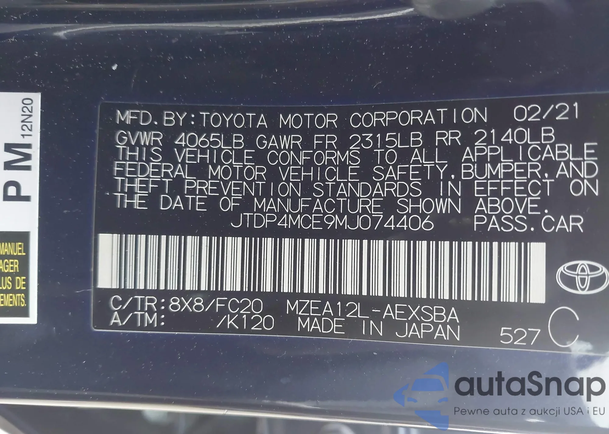 • VIN 5YFB4MDE6SP282390