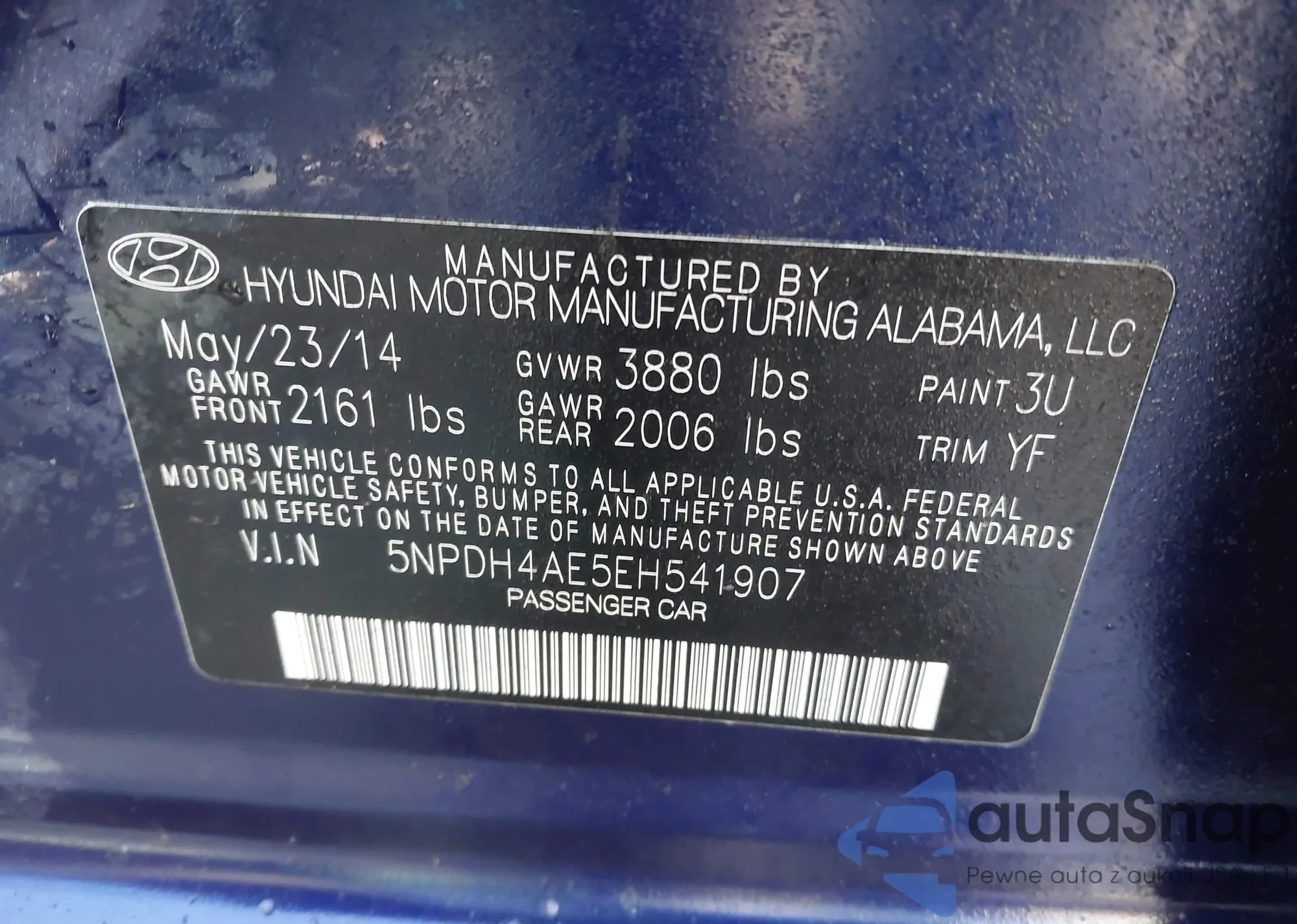 • VIN 5NPDH4AE5EH541907