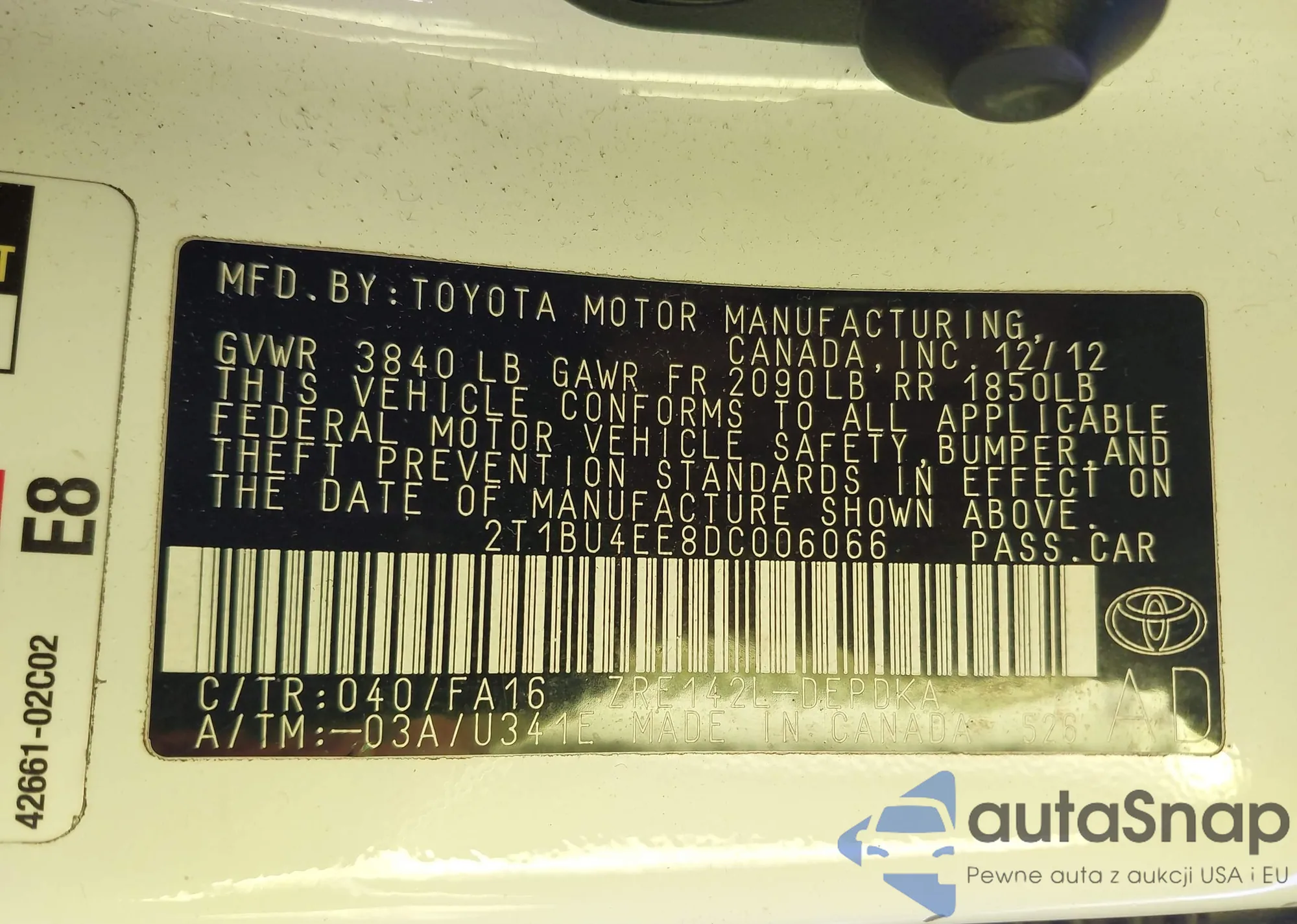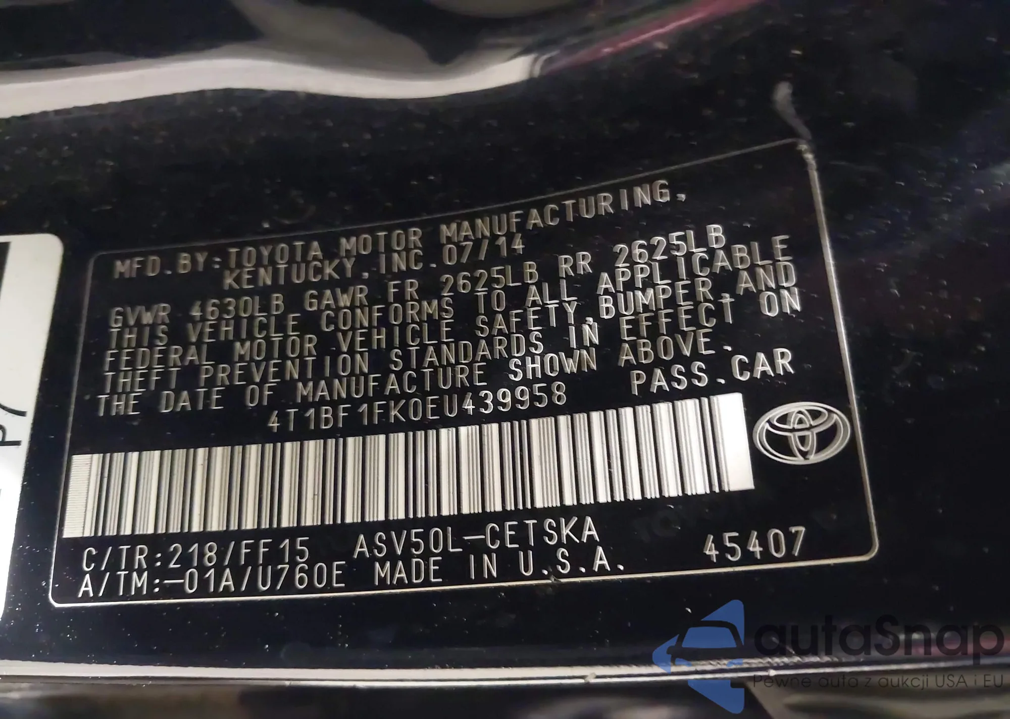 • VIN 4T1BF1FK0EU439958