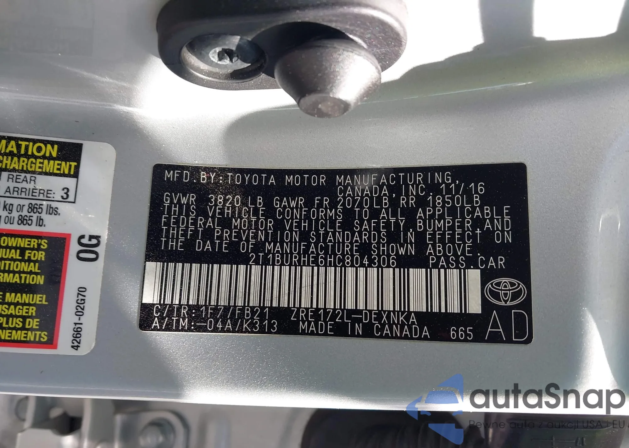 • VIN 2T1BURHE6HC804306