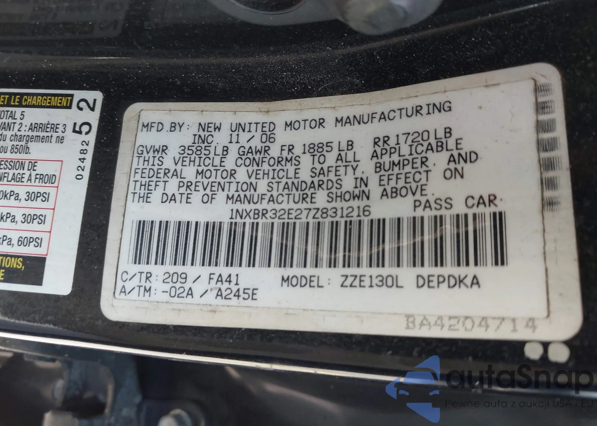 • VIN 1NXBR32E27Z831216