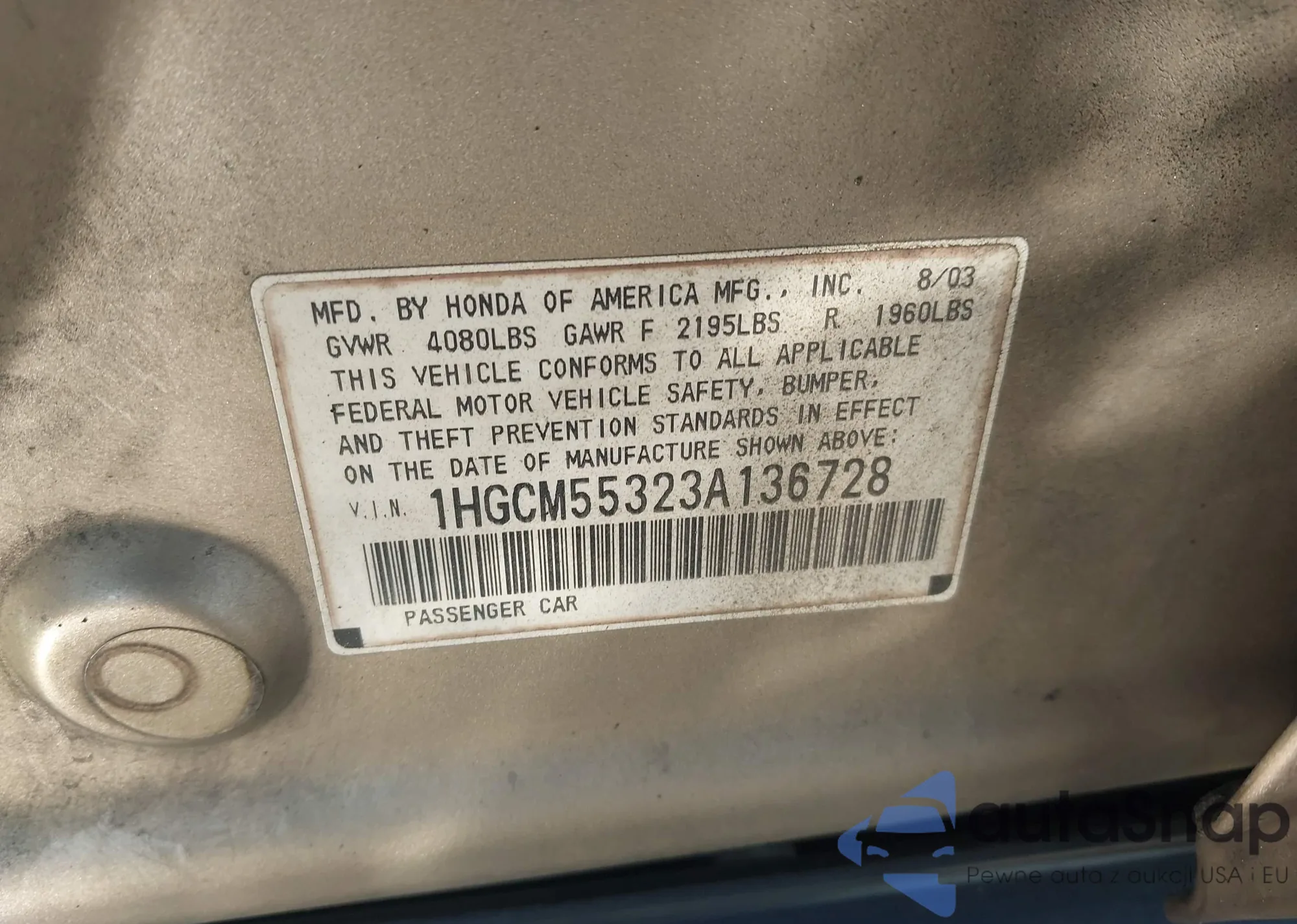 LOT: 43757854 VIN: 1HGCG56672A020603