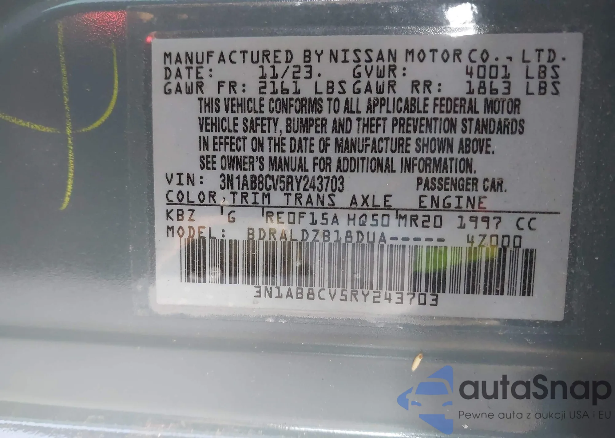 • VIN 3N1AB8CV5RY243703
