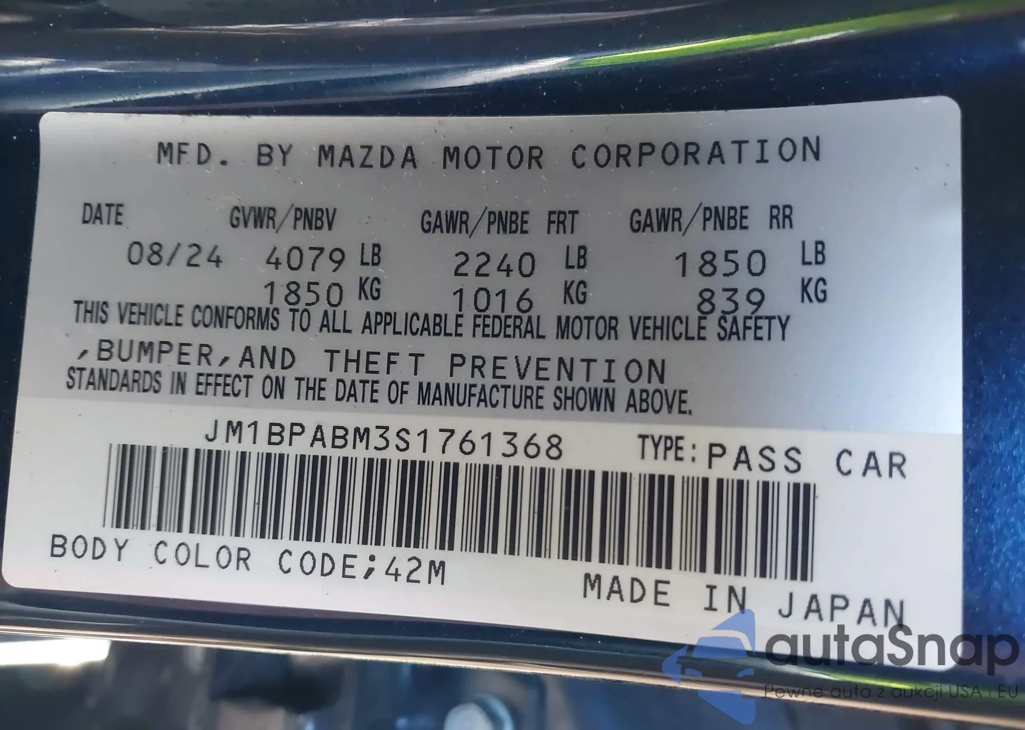 LOT: 44377786 VIN: JM1BPABM3S1761368