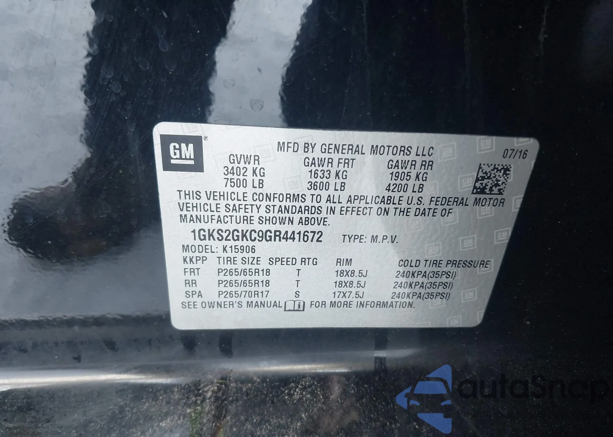 • VIN 5J6RM4H39FL128434