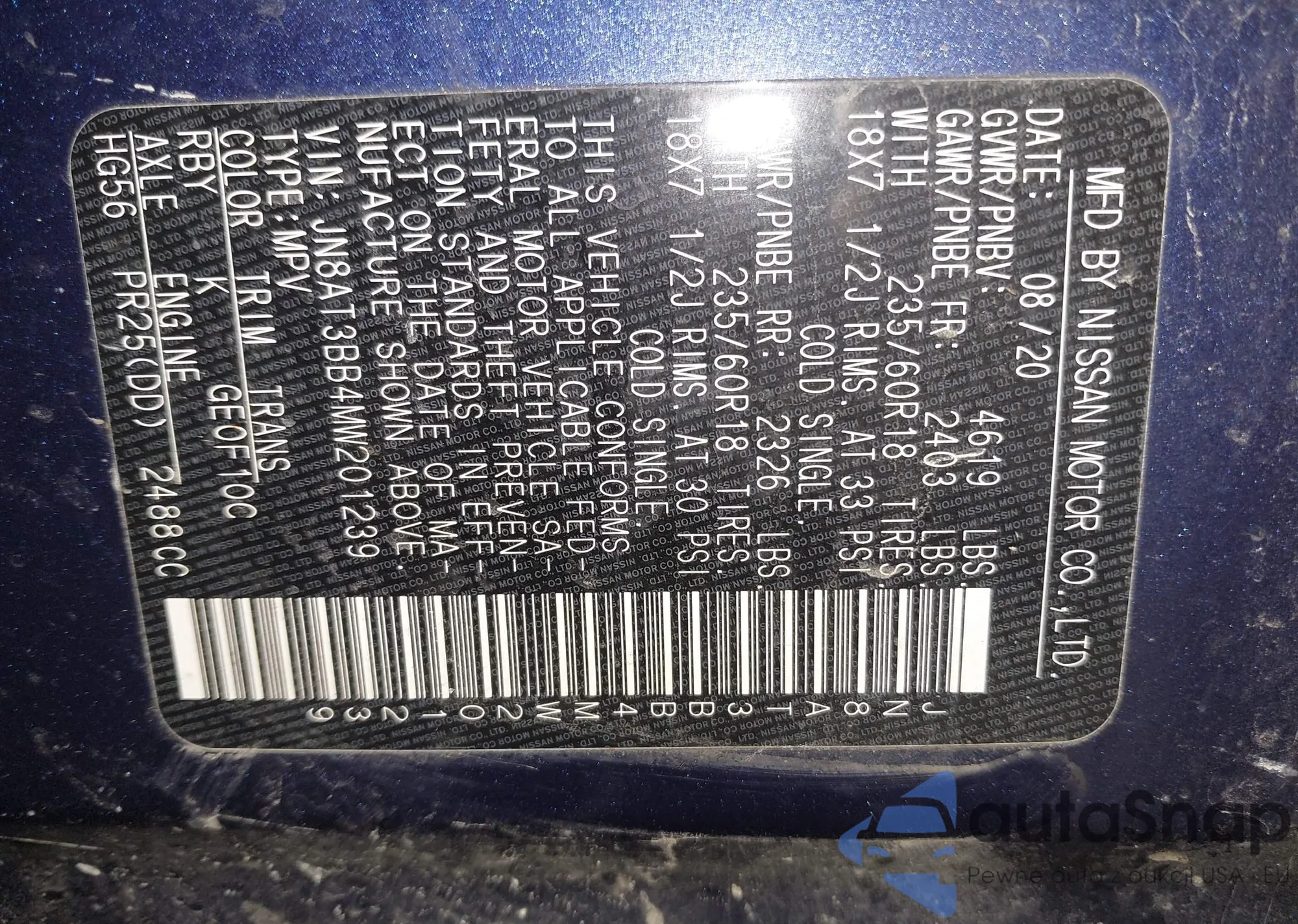 LOT: 43849916 VIN: JN8AT3BB4MW201239