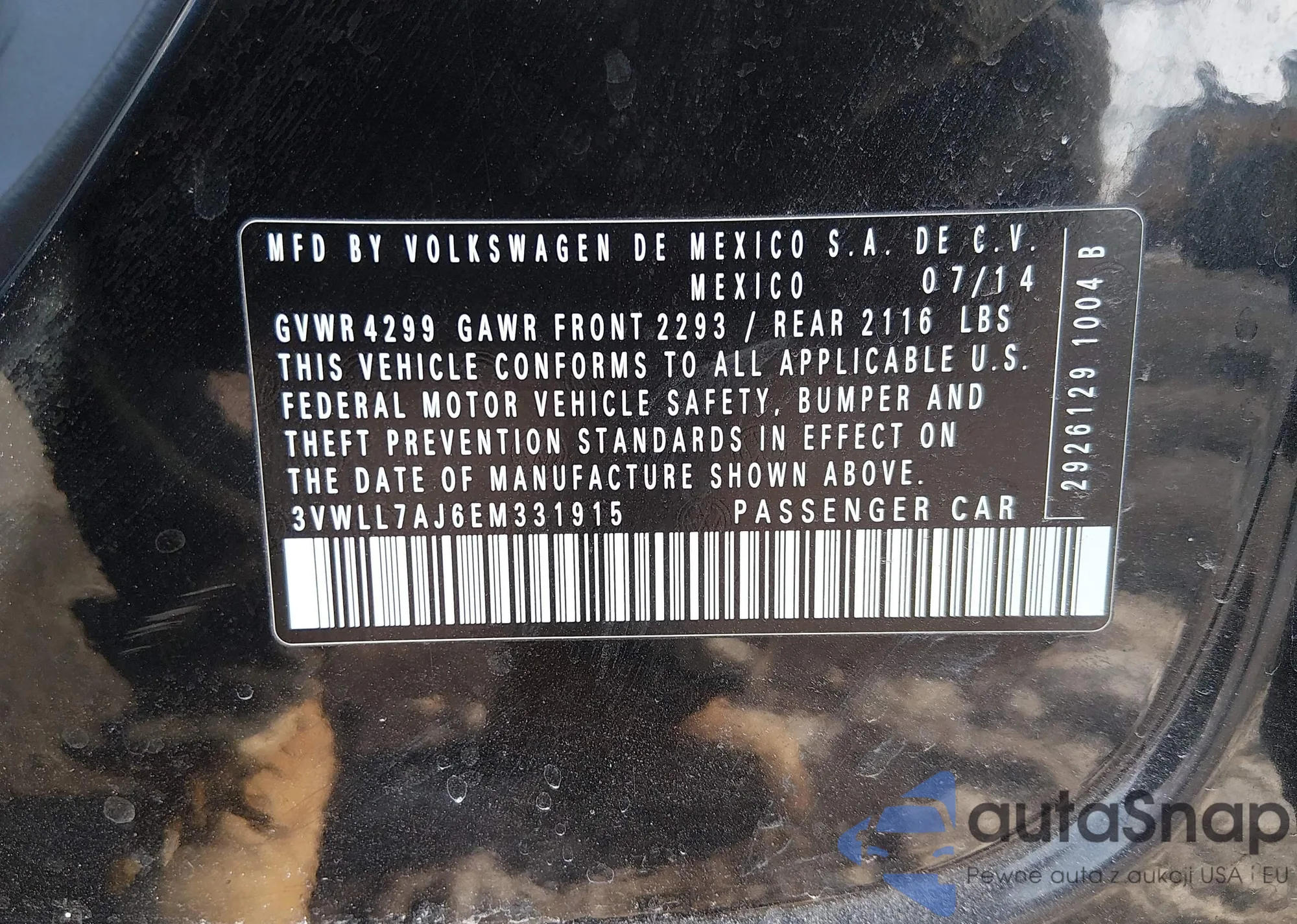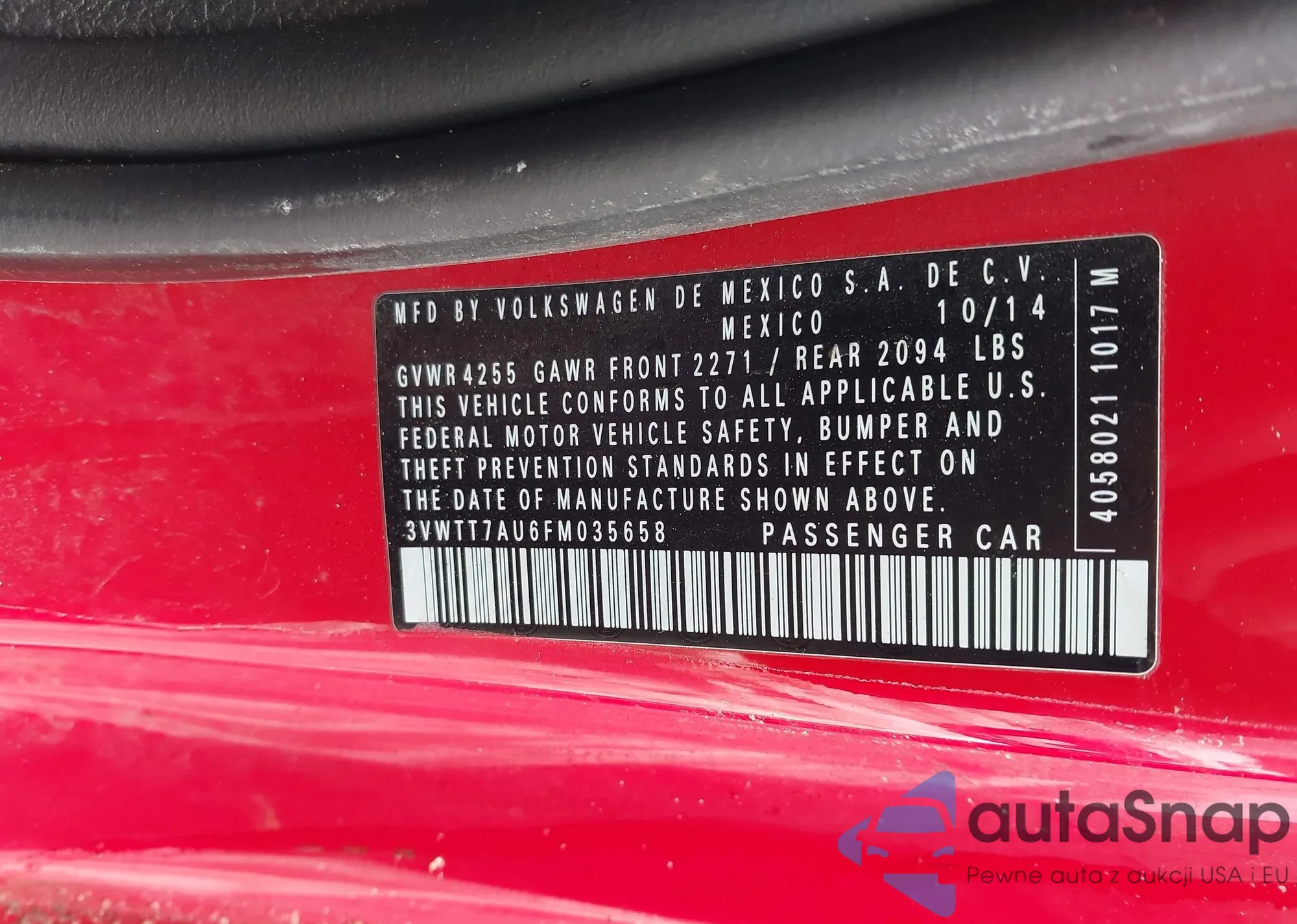• VIN 3VWTT7AU6FM035658