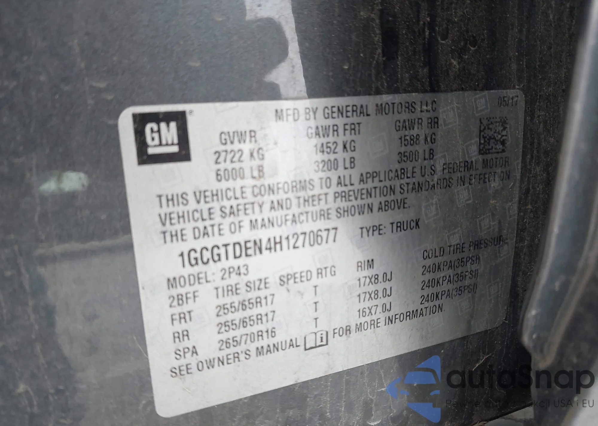 • VIN 1GCGTDEN4H1270677