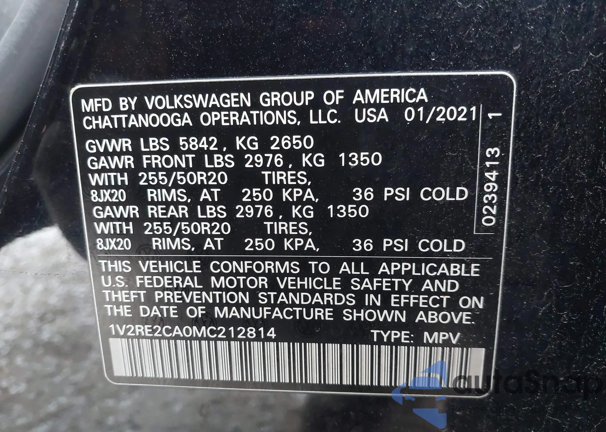 • VIN 1V2RE2CA0MC212814