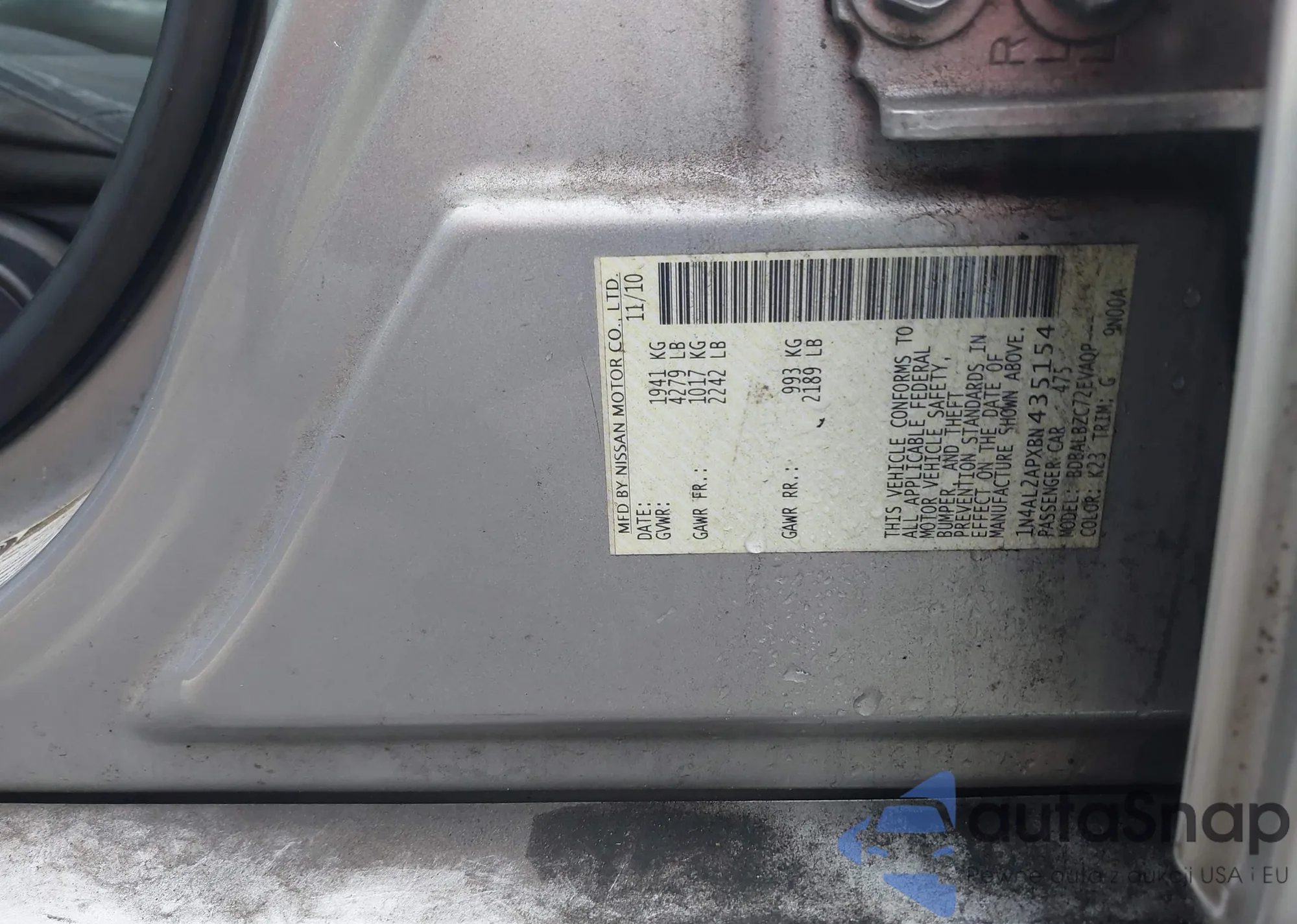 LOT: 44232888 VIN: 1N4AL2APXBN435154
