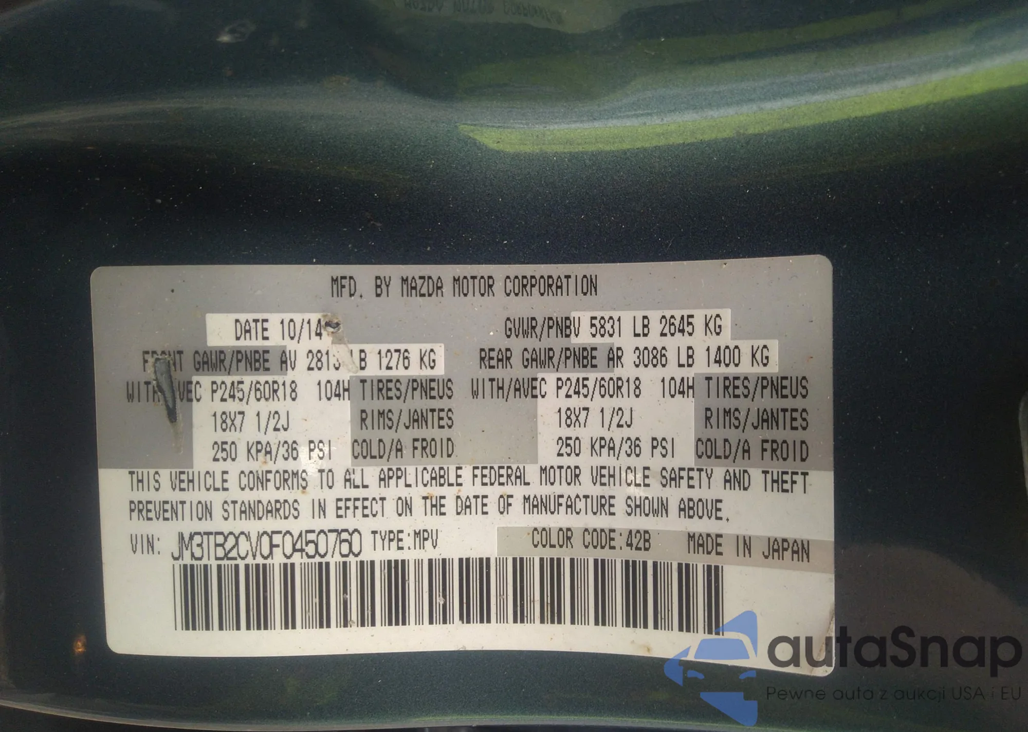 • VIN JM3TB2CV0F0450760