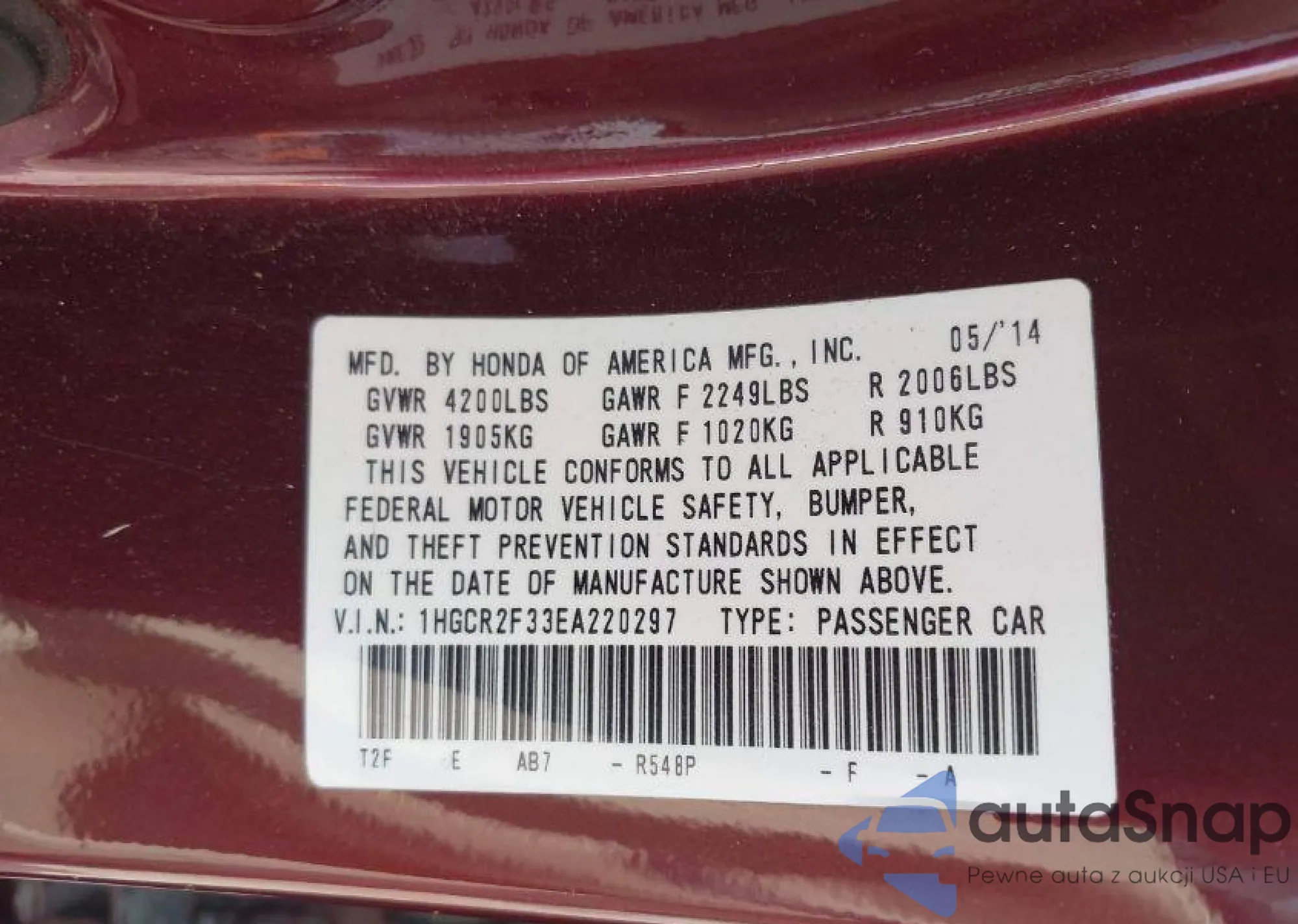 • VIN 1G6AP5SX5K0145449