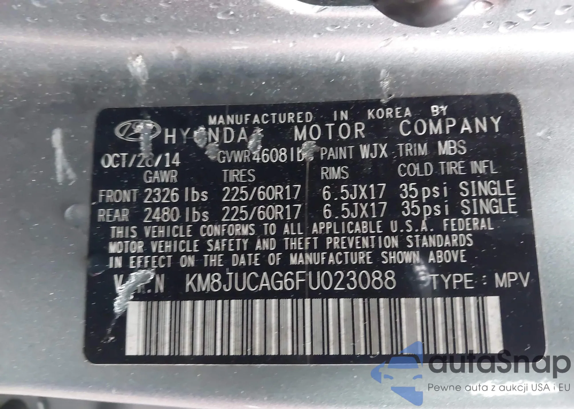 LOT: 43500185 VIN: KM8JUCAG6FU023088