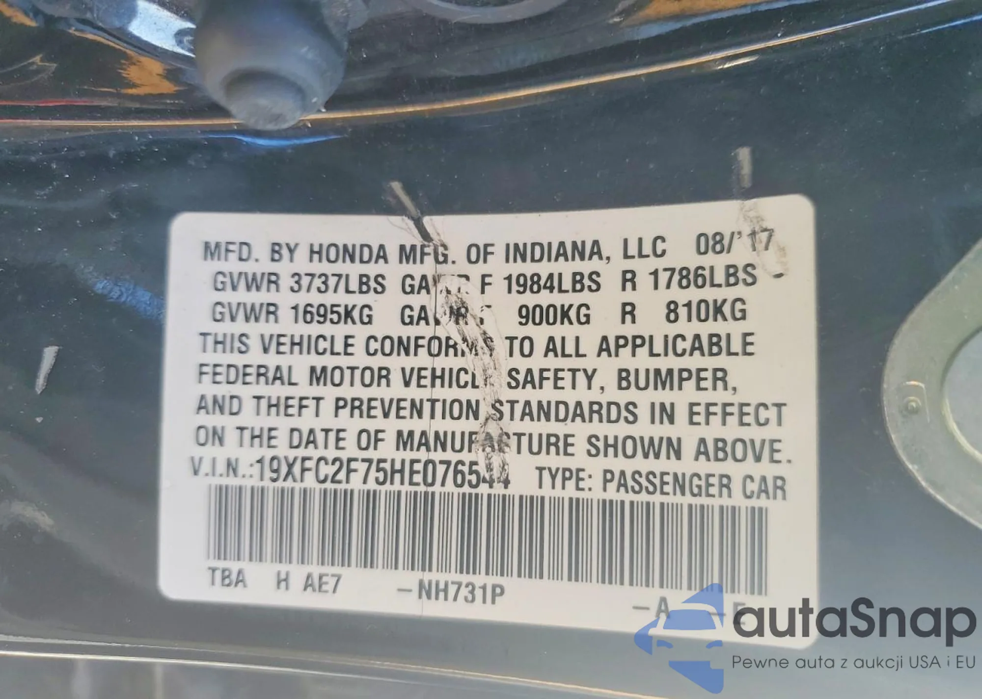 • VIN 19XFC2F75HE076544