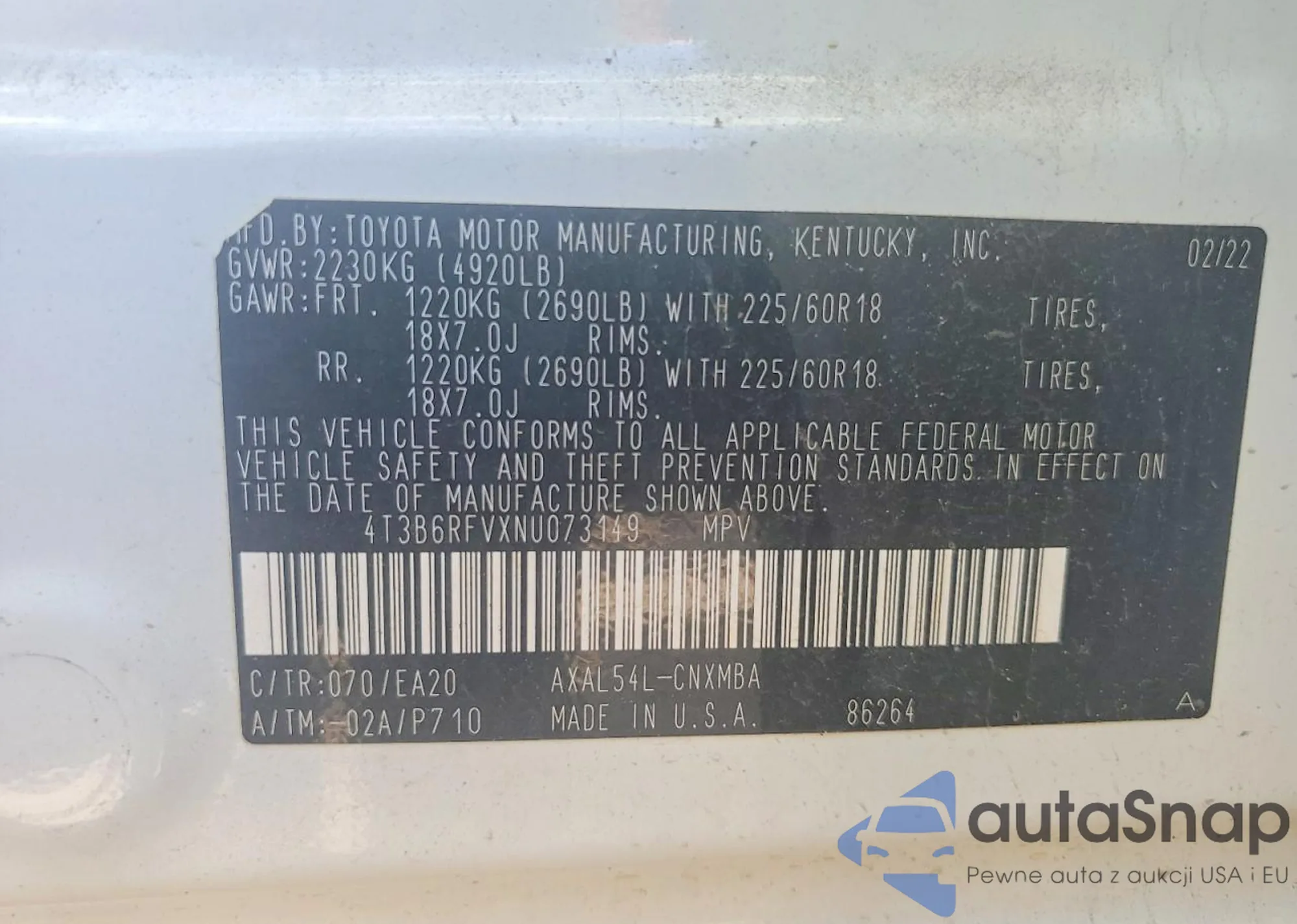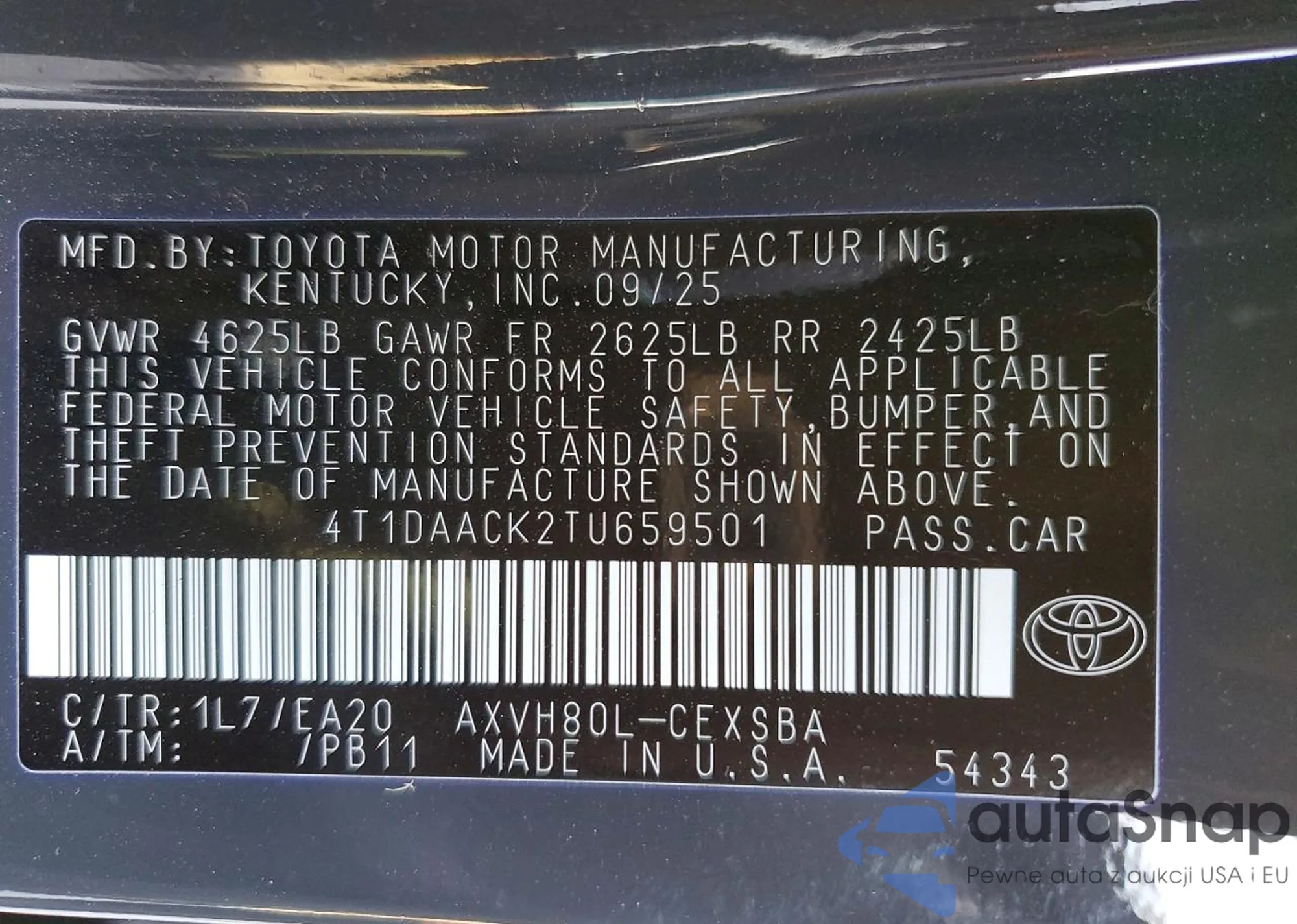 • VIN 4T1DAACK2TU659501