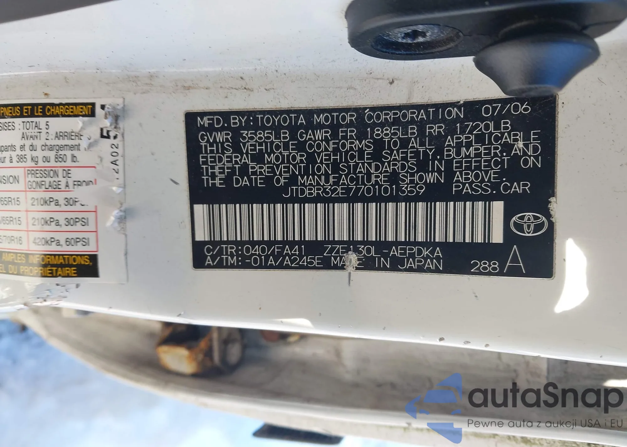 • VIN 3VVCB7AX7NM007366