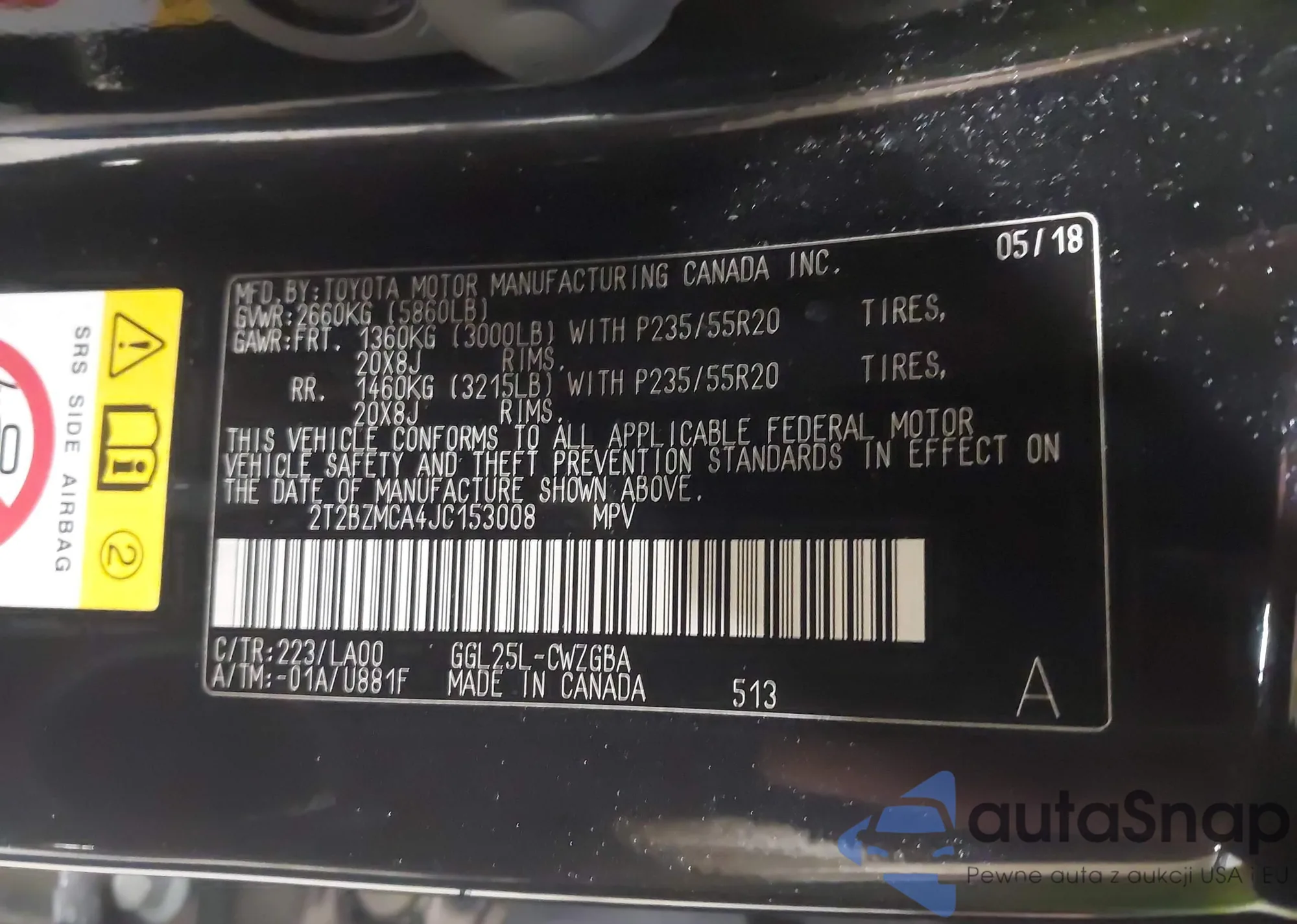 • VIN 2T2BZMCA4JC153008