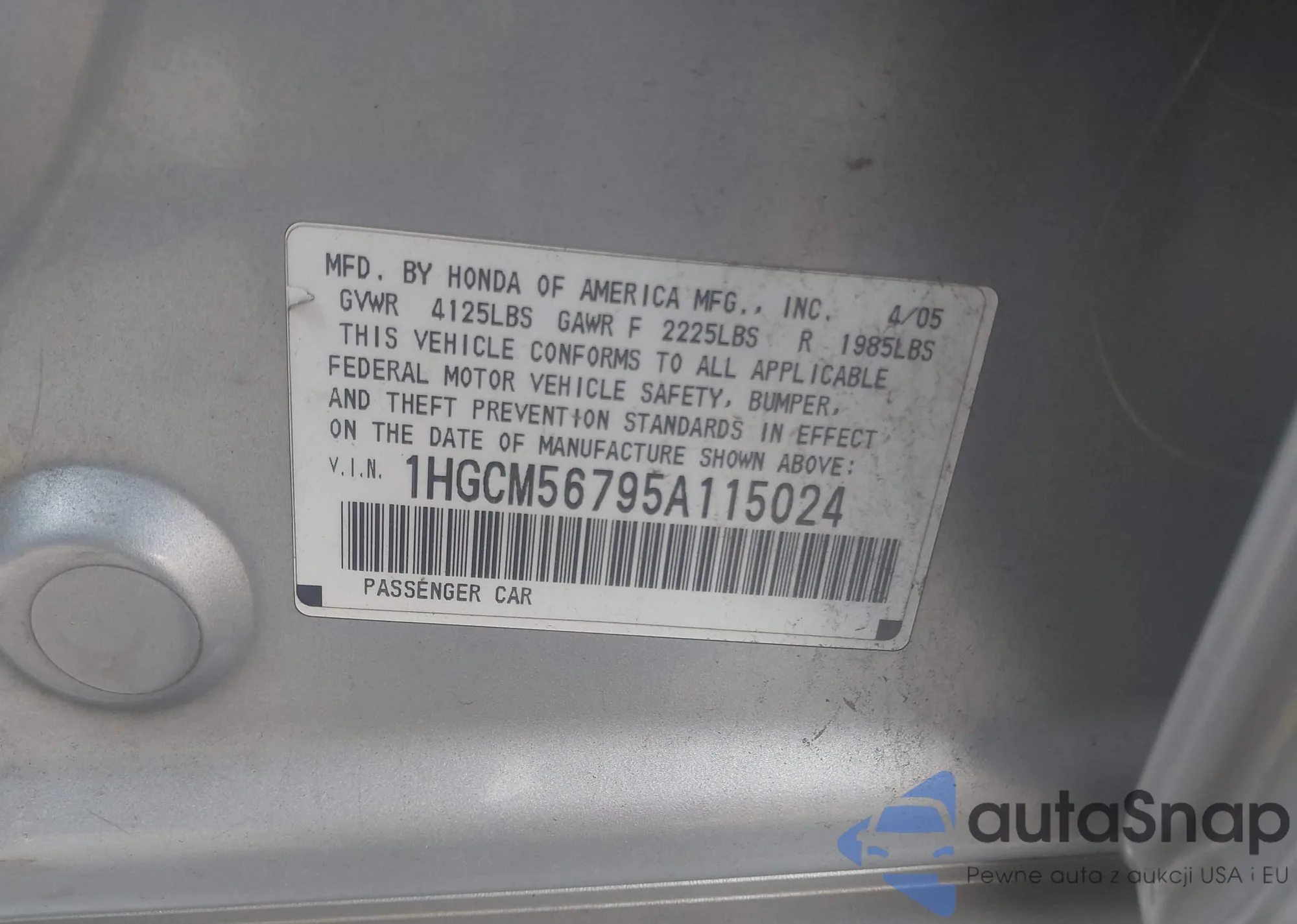 • VIN 2HKRM3H59GH568208
