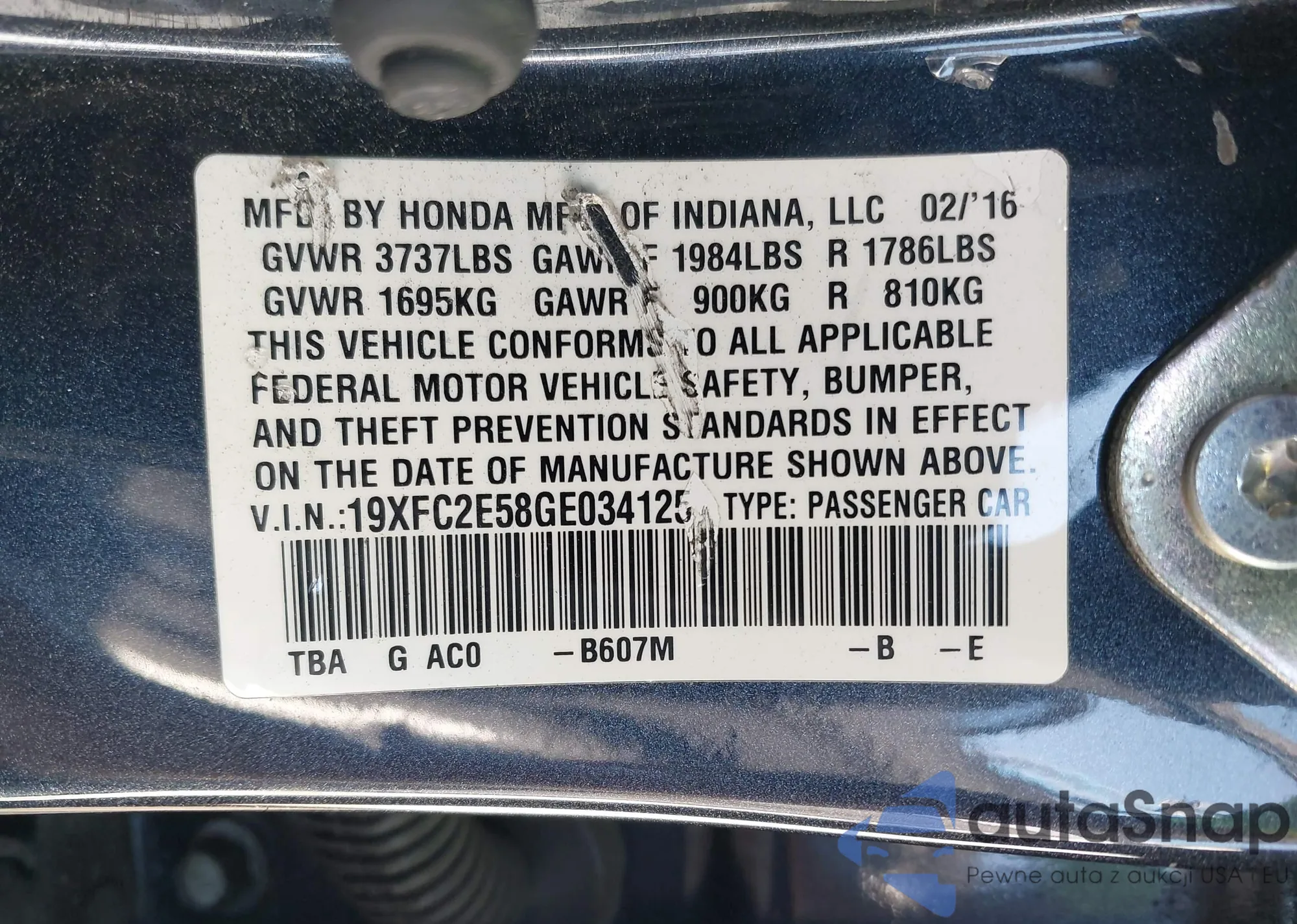 • VIN 19XFC2E58GE034125