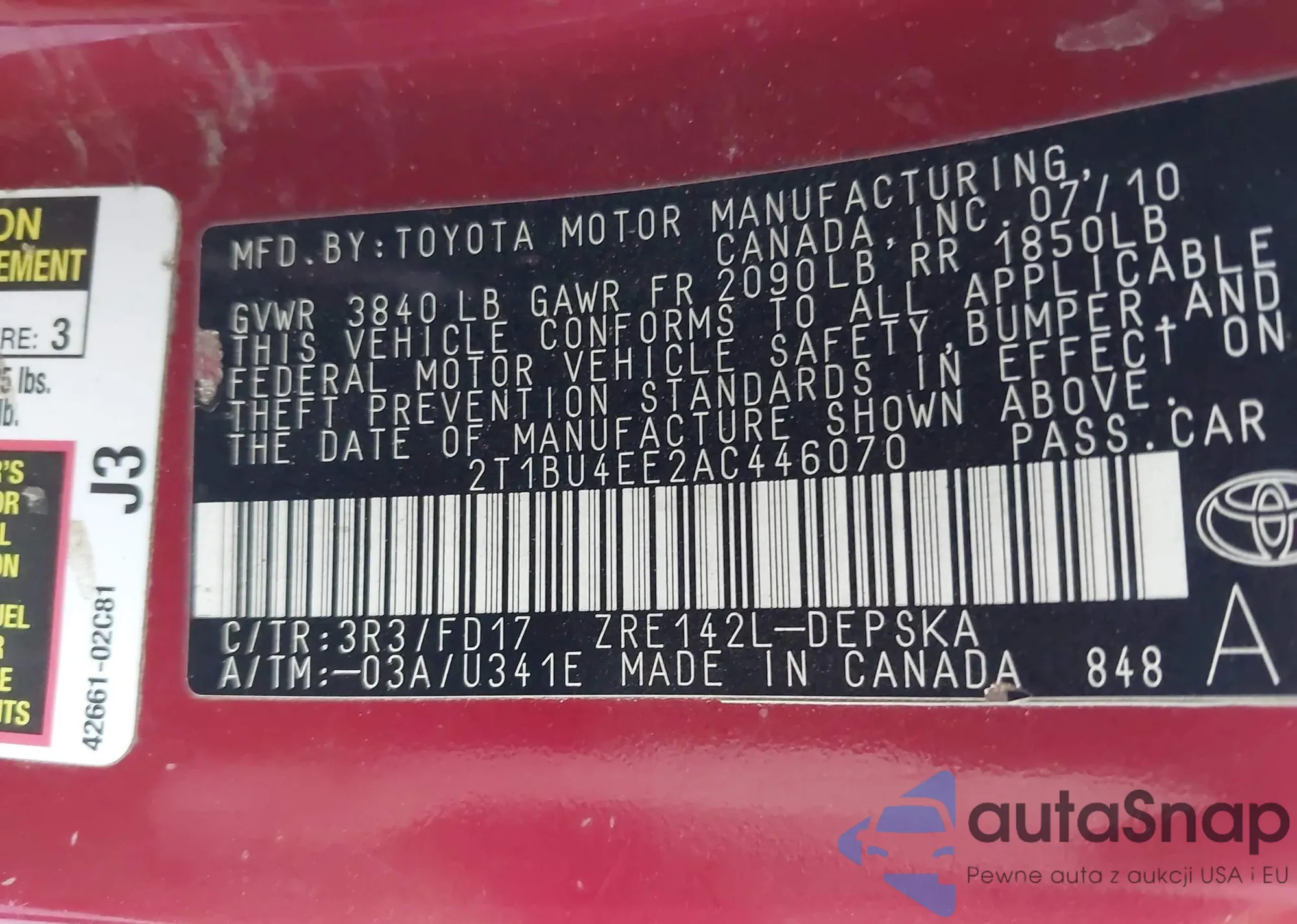 • VIN 2T1BU4EE2AC446070