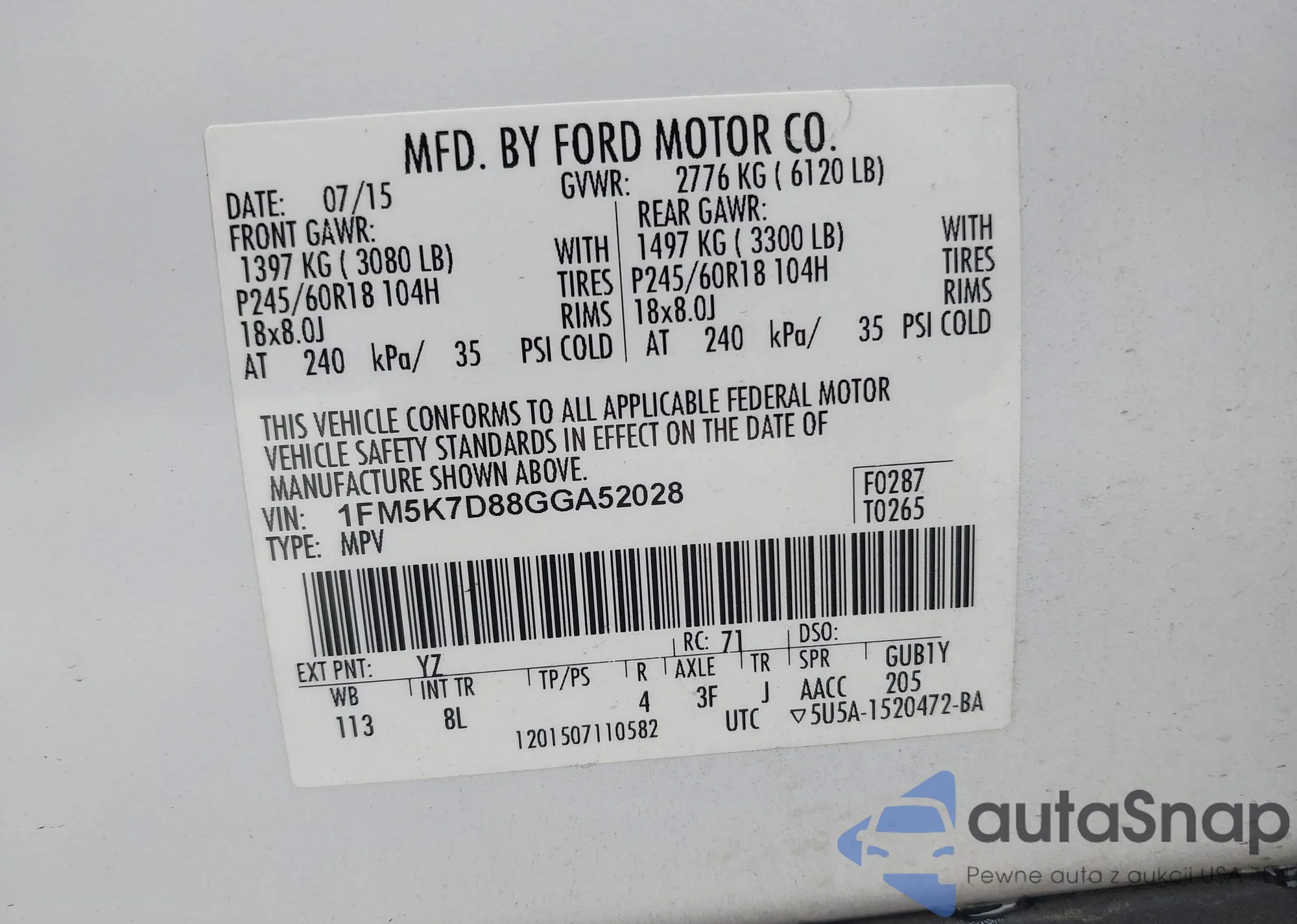 • VIN 1FM5K7D88GGA52028