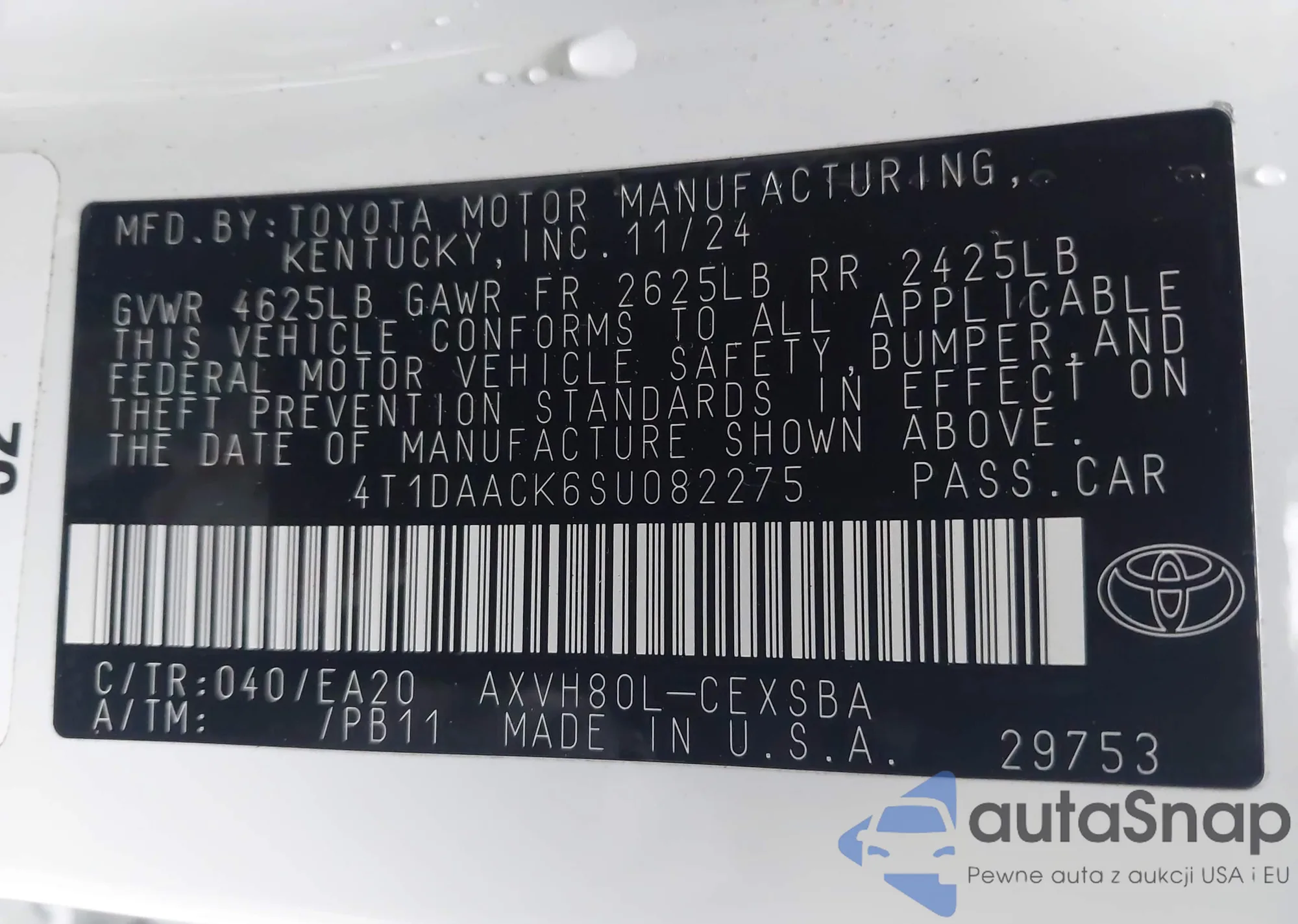 • VIN 4T1DAACK6SU082275