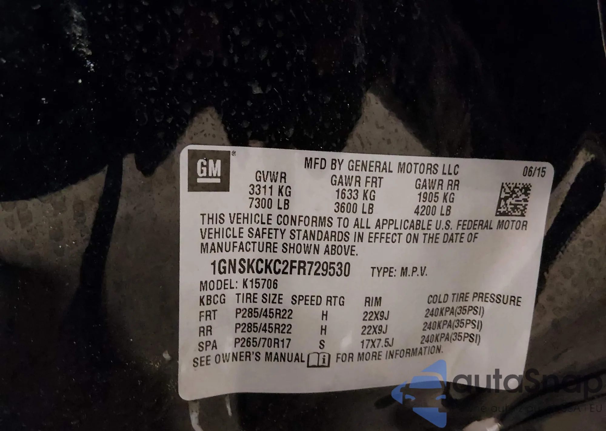 LOT: 44158028 VIN: 1GNSKCKC5FR552035