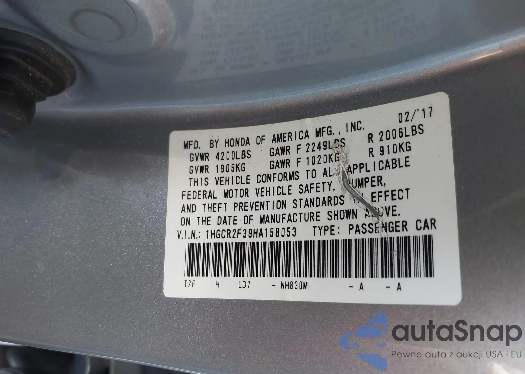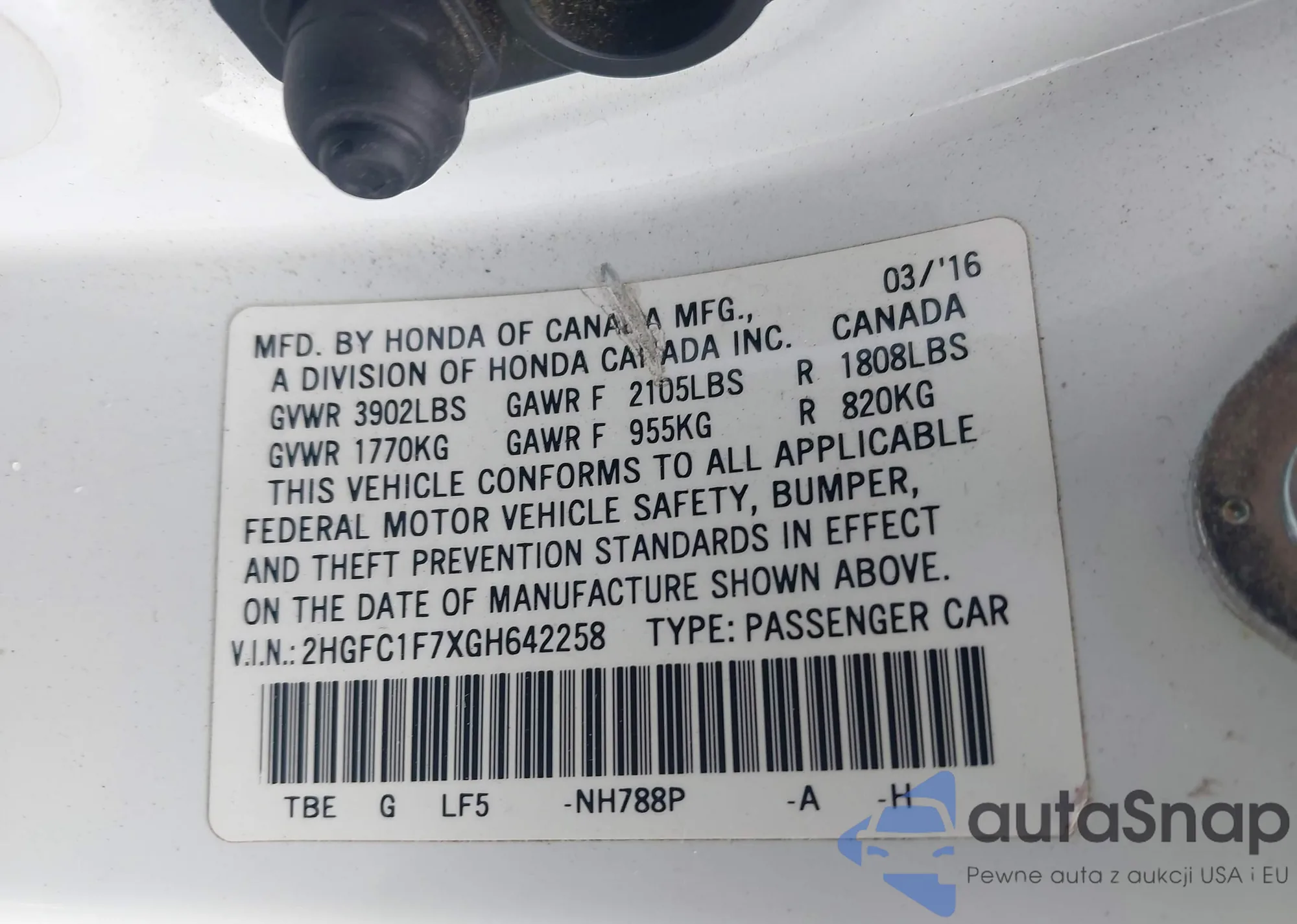 • VIN 2HGFC1F7XGH642258