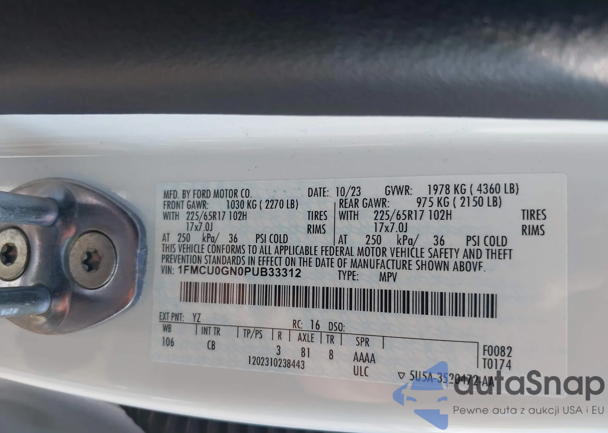 • VIN 3KPF44AC8ME293500