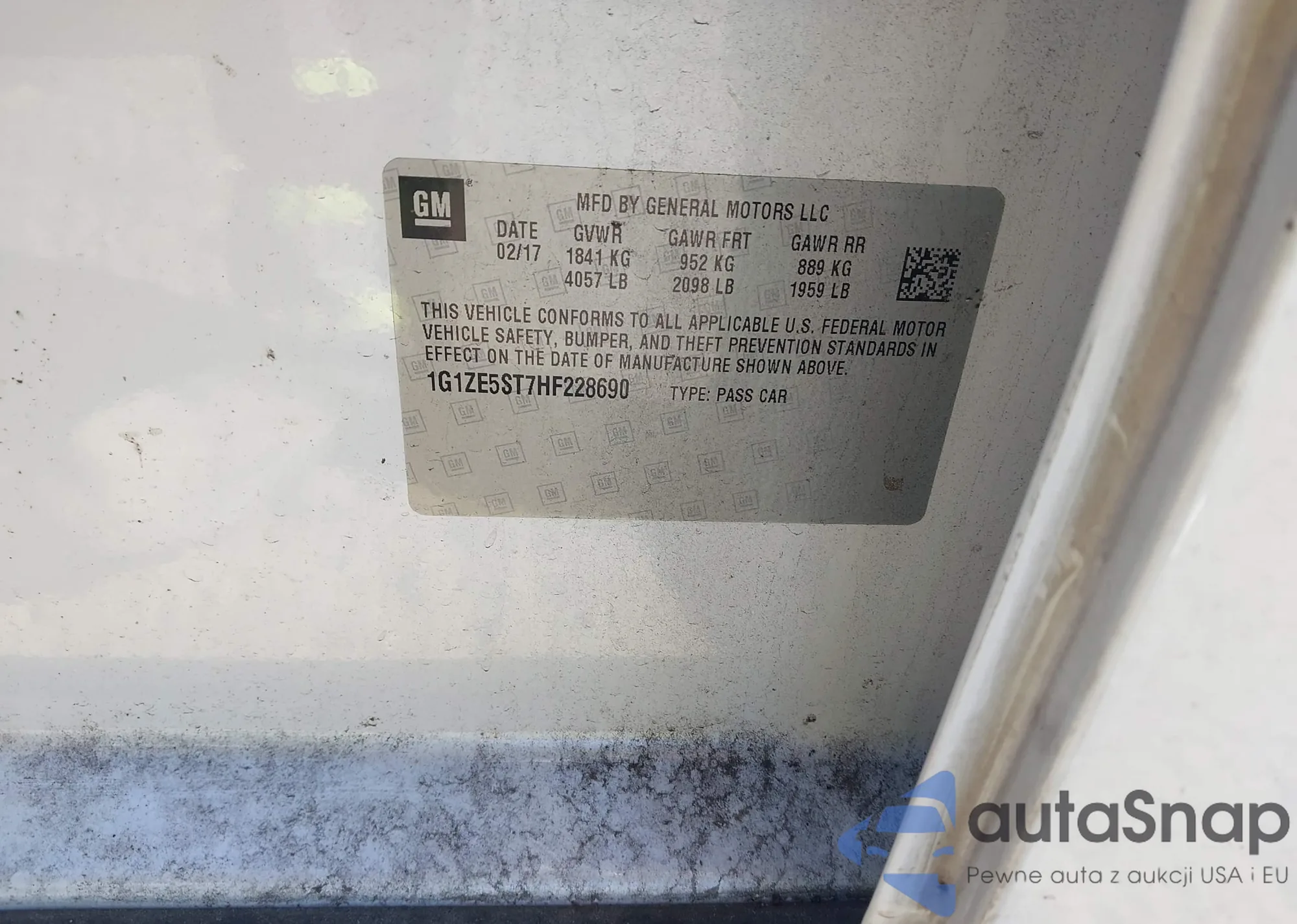 • VIN 1G1ZE5ST7HF228690