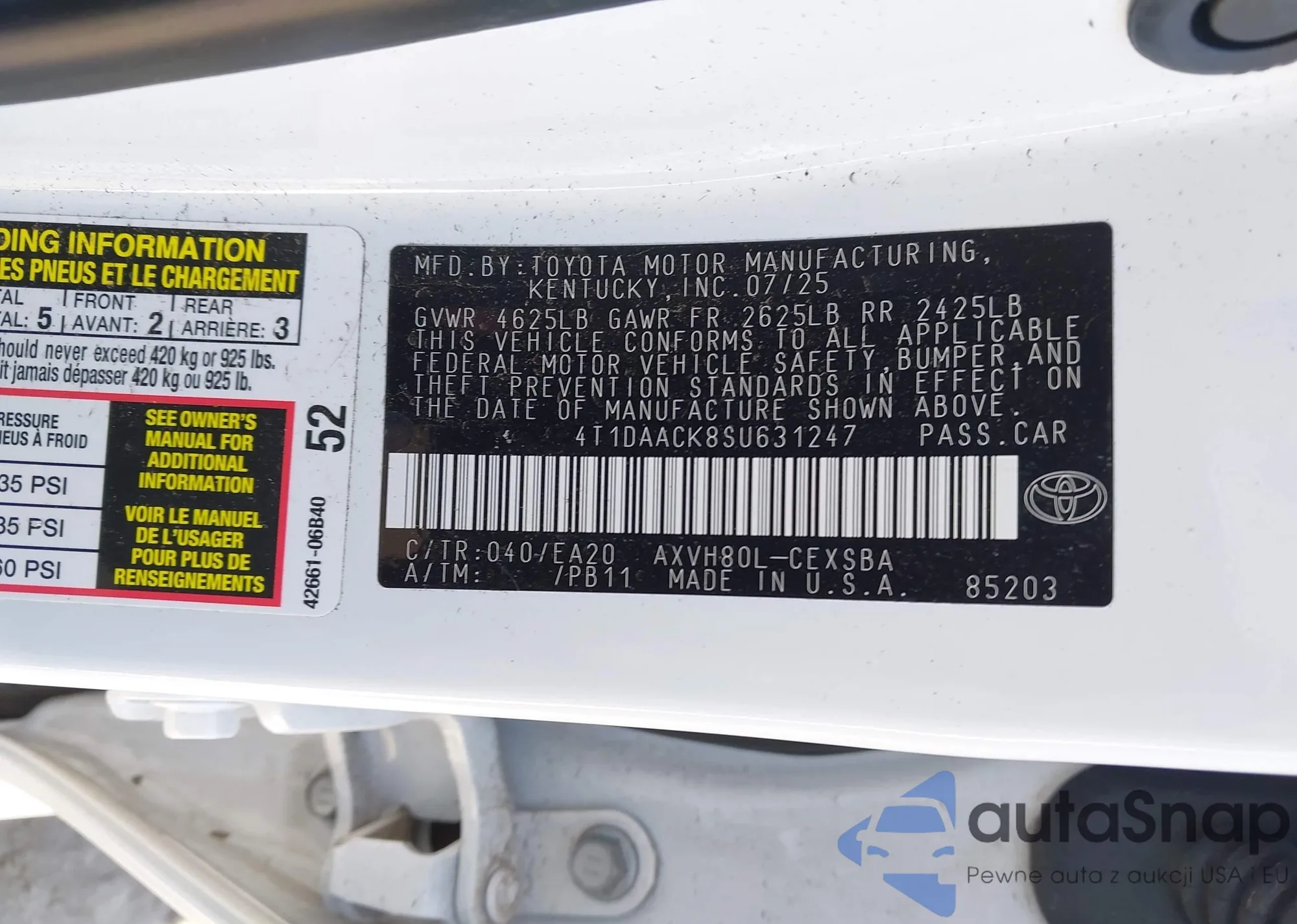 • VIN 4T1DAACK8SU631247