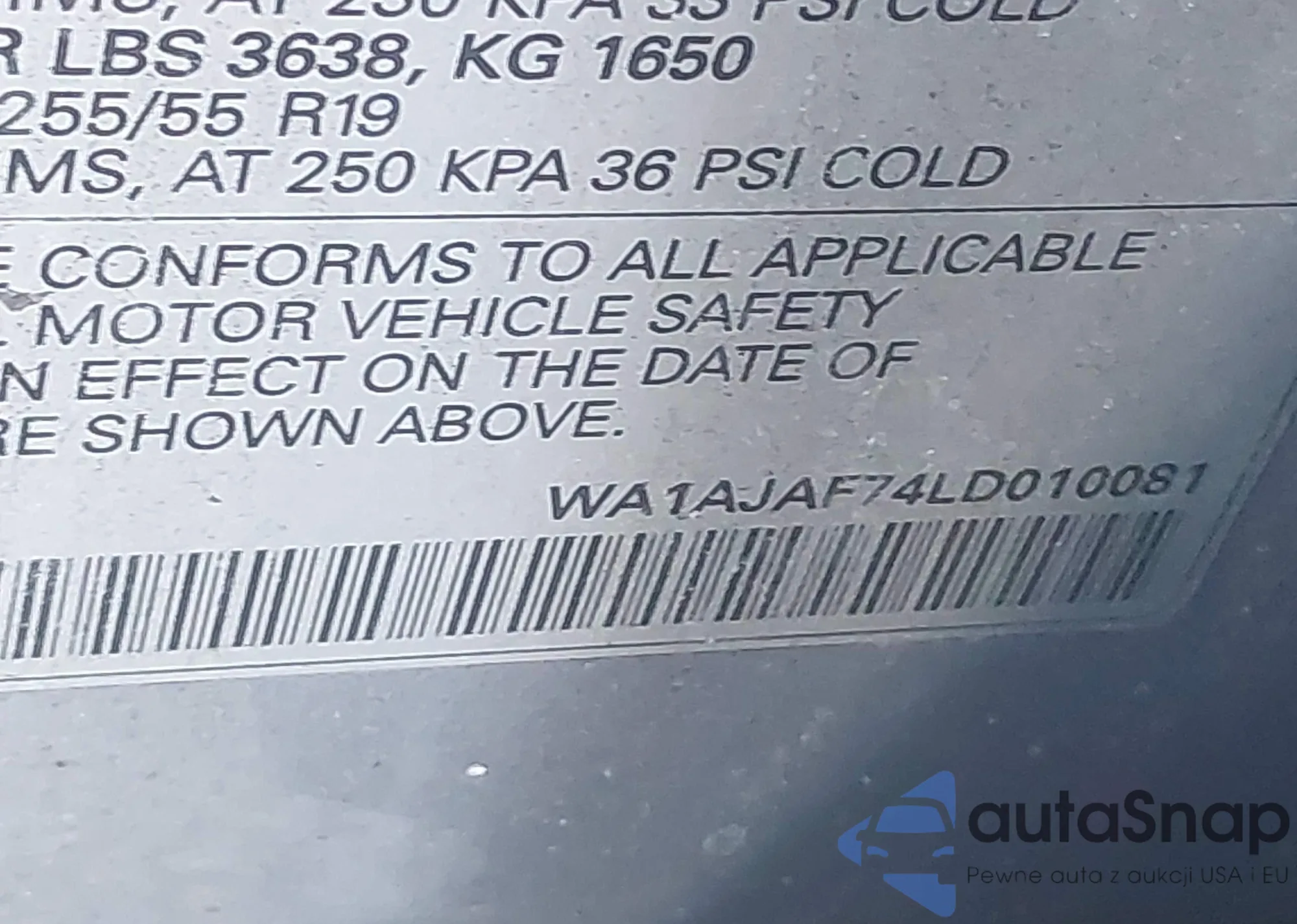 LOT: 44401981 VIN: WA1AJAF74LD010081