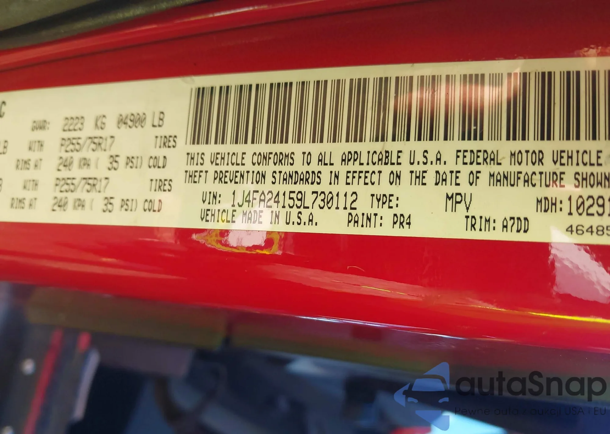 • VIN 7FARW2H57JE001509