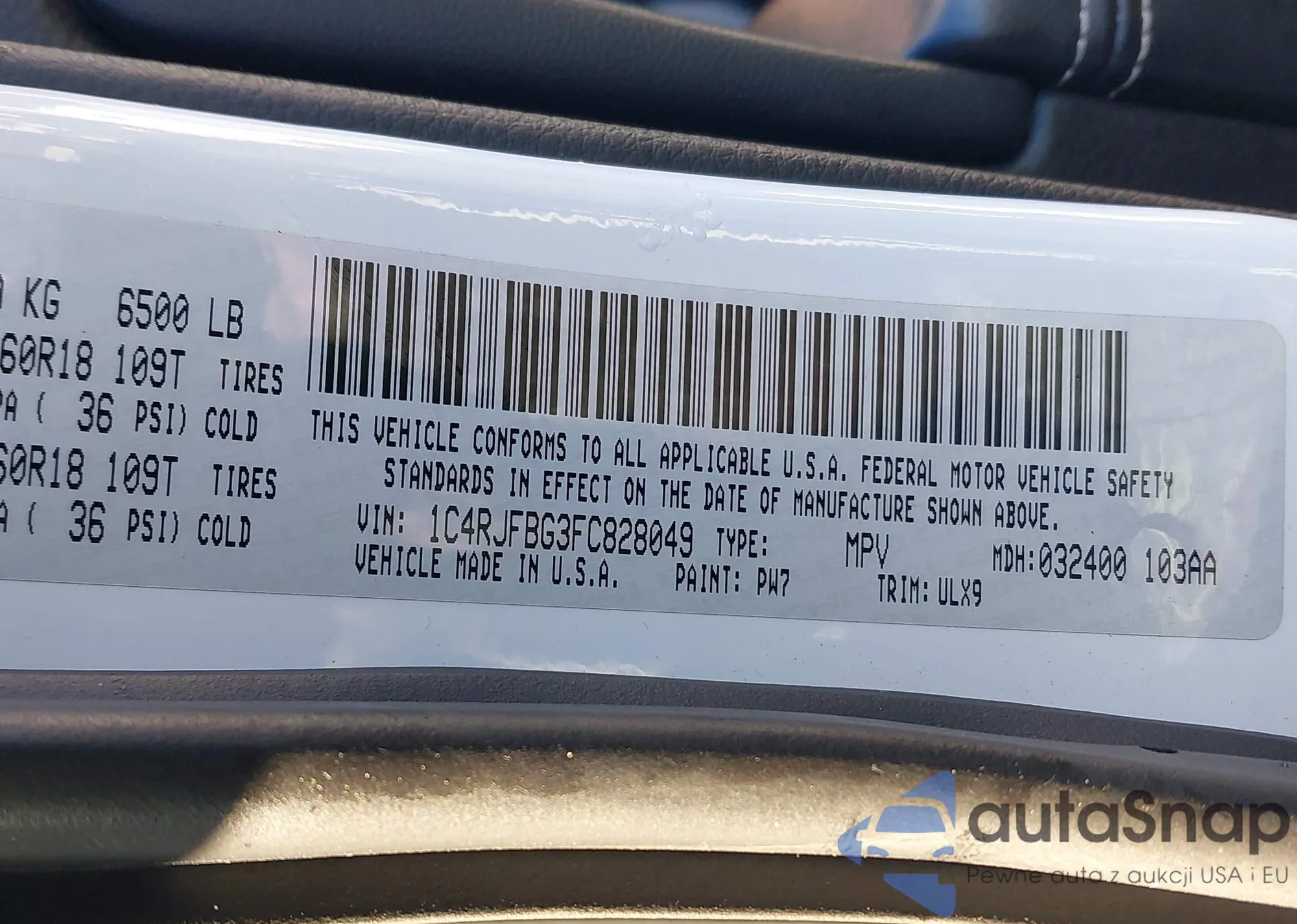 • VIN 1C4RJFBG3FC828049