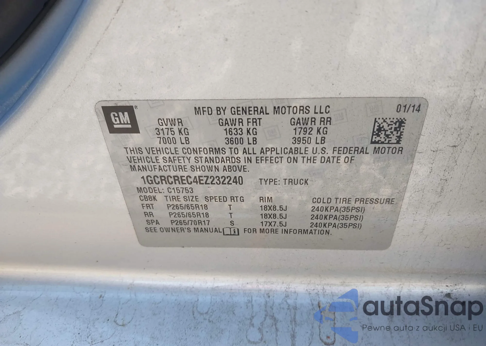 • VIN 1GC1KVEG9FF541605