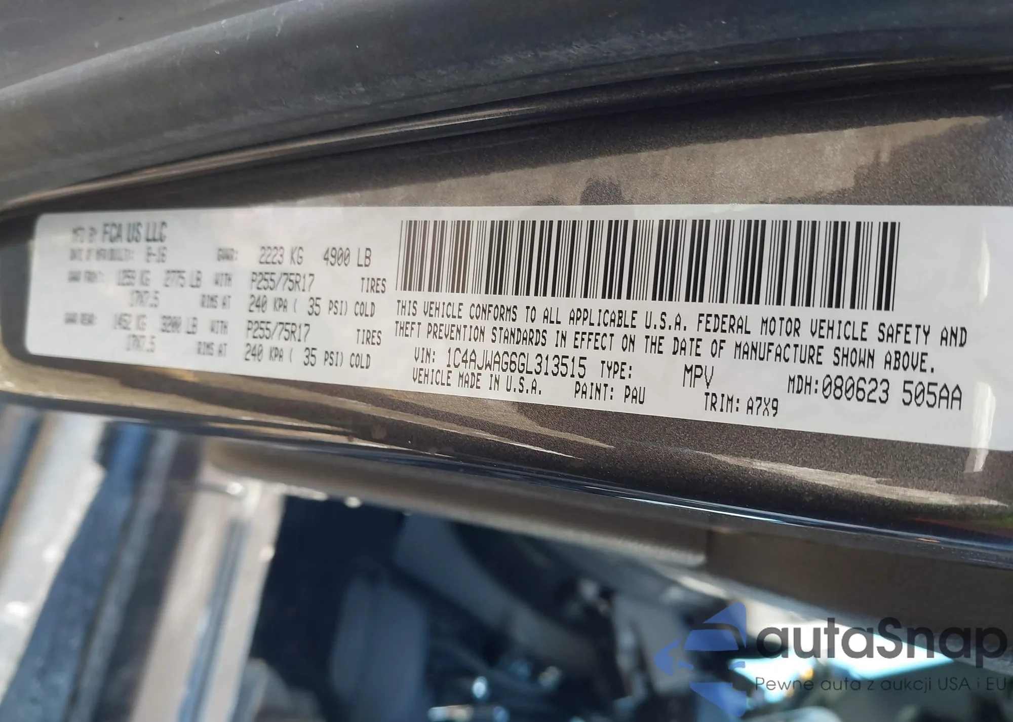 • VIN 1C4AJWAG6GL313515