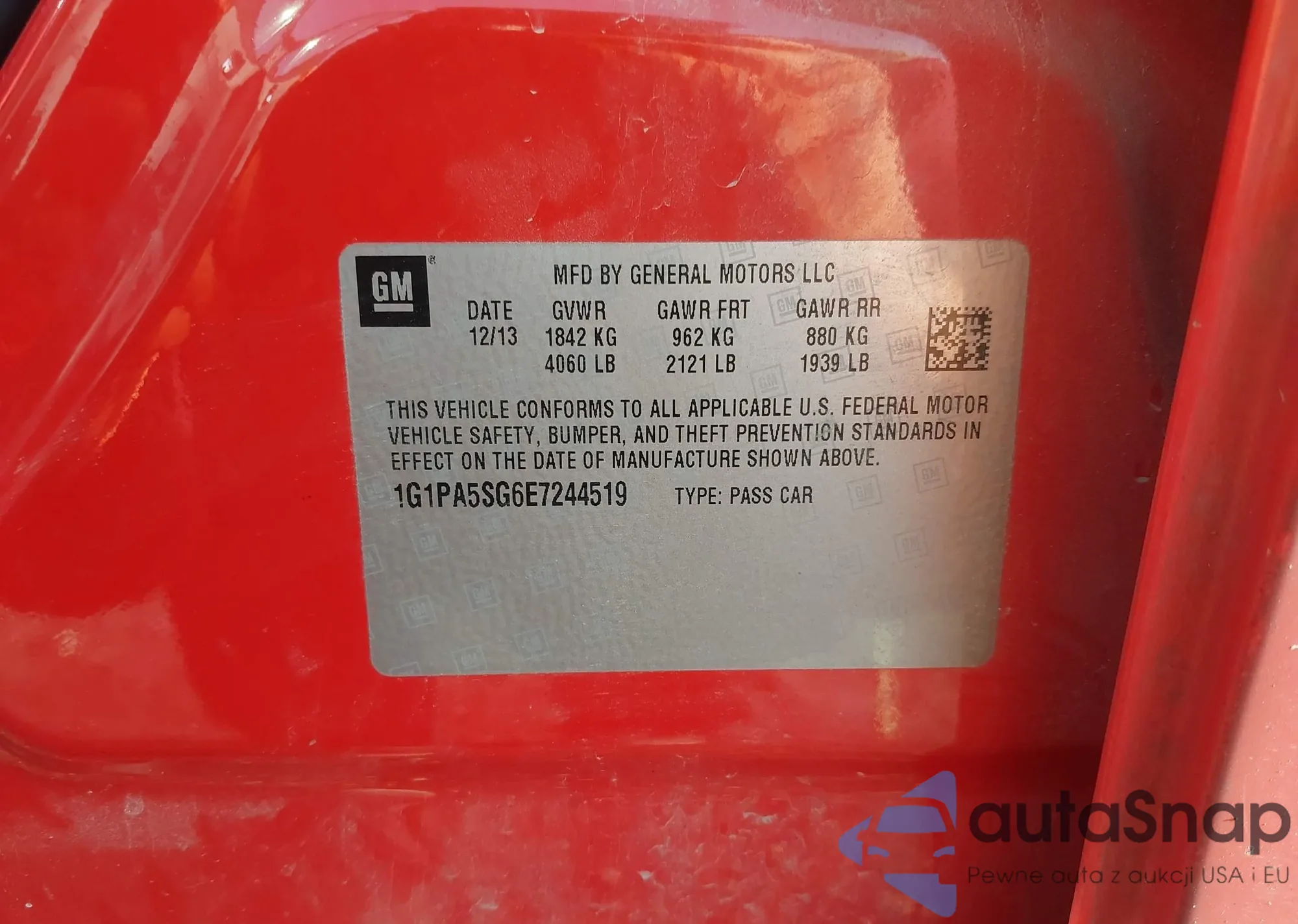 LOT: 43767863 VIN: 1G1PA5SG6E7244519